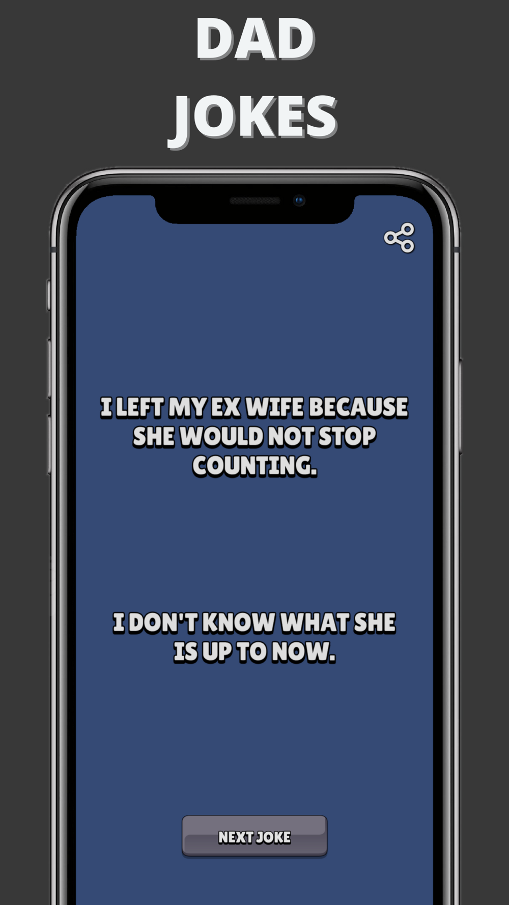 Our app features a colorful and minimalist design that lets you fully enjoy these hilarious jokes. Share them with your friends and family on social media, or keep them all to yourself and have a good laugh. With The Best Dad Jokes, you'll never be short on laughs again!