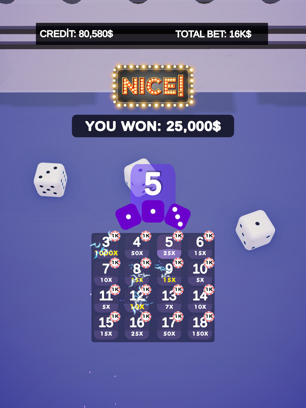 Guess the sum of the 3 dice and become one of the richest! All it takes is the right tactic and a little luck...