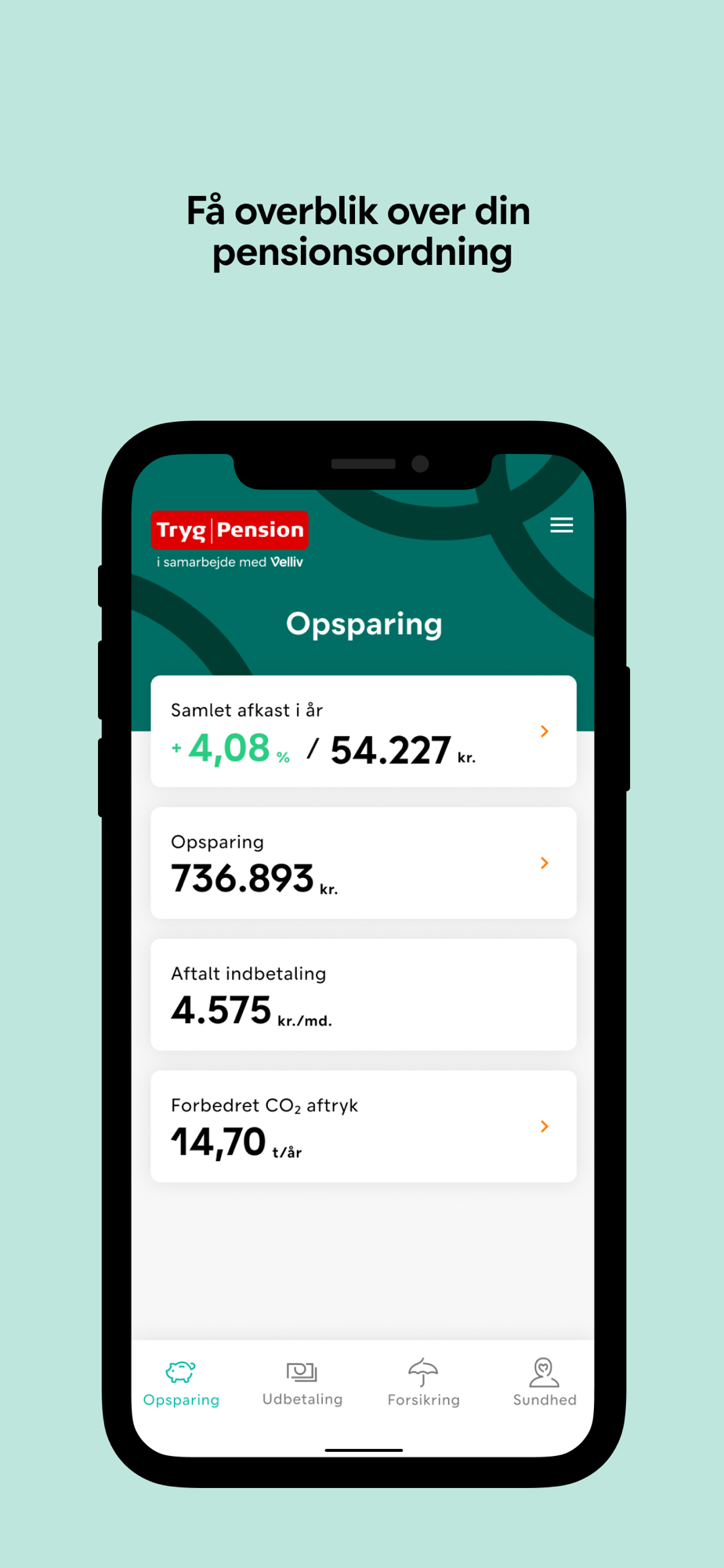 The app will provide you with an overview of your pension scheme at Tryg Pension in cooperation with Velliv: