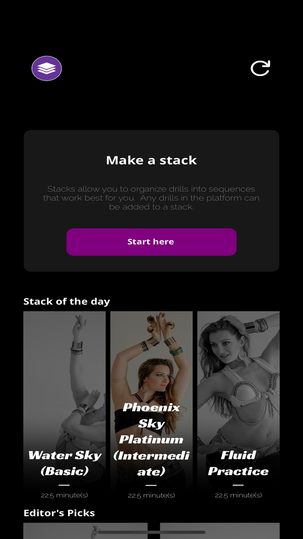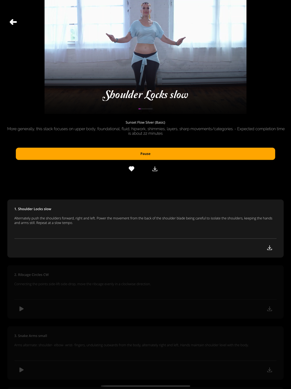 In addition to creating your own customized playlists, Belllydance Stackable Drills features lots of premade practice playlists of varying levels, technique focuses, and lengths of time. An especially exciting feature to keep you looking forward to your practice as well as progressing in it is our featured Daily Drill- a new one each day for each level!