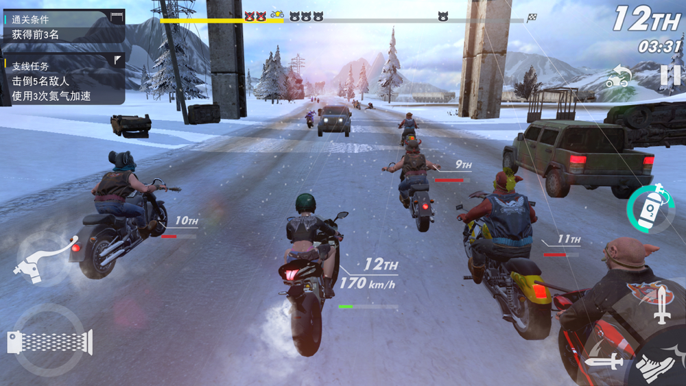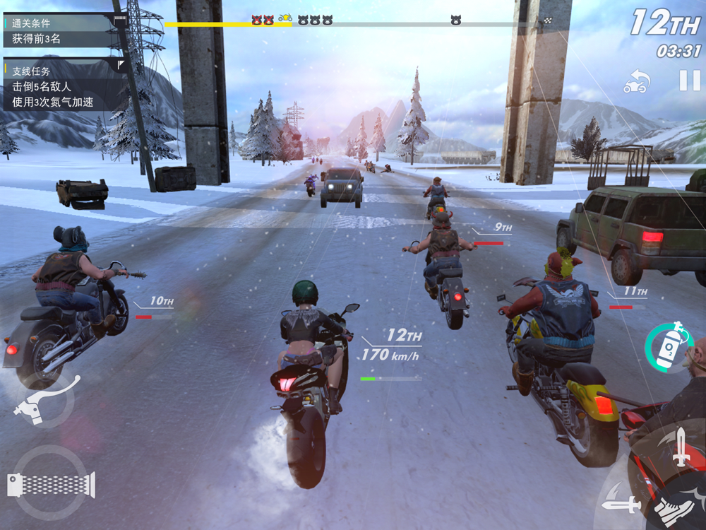 本作是一款3D摩托车赛车游戏,游戏之中主要以摩托赛车为主,游戏将格斗的元素融于到游戏之中,让玩家们体验了不一样的游戏激情,游戏之中的摩托种类很多,玩家们可以自由的选择。