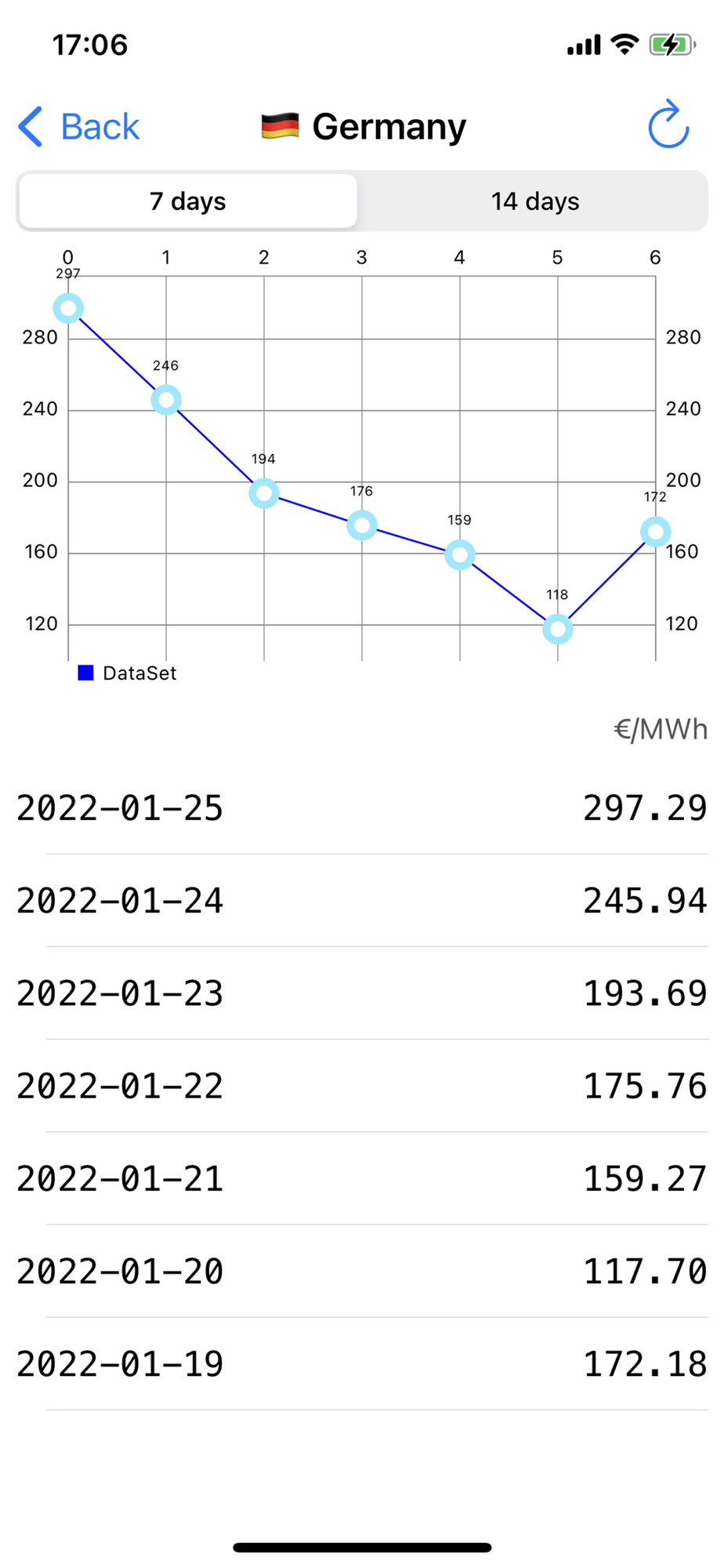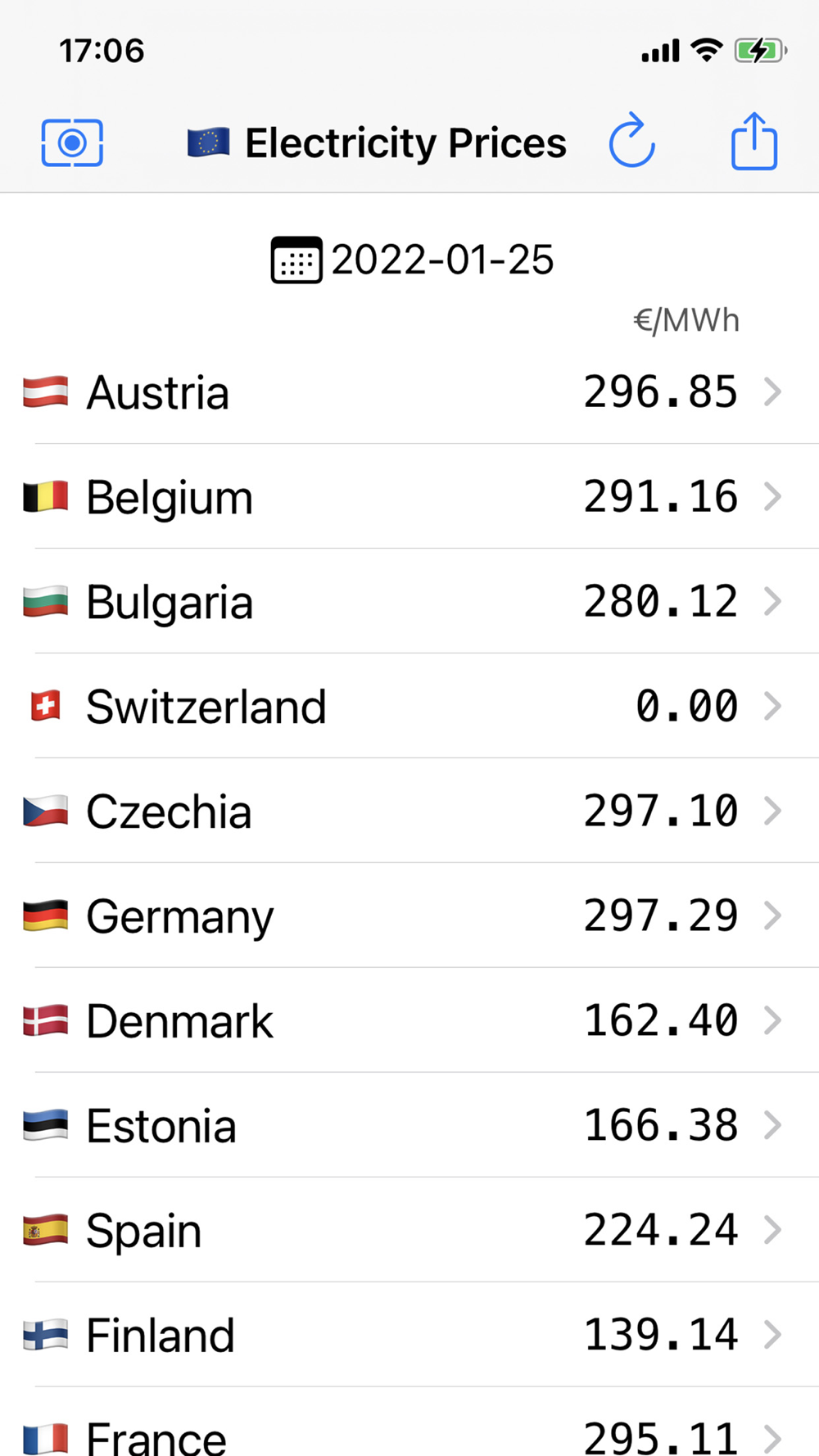 This app provides free access to the latest electricity prices in Europe for the day-ahead segment. During the ongoing energy crisis in Europe, we all need free and easy access to the latest electricity prices.