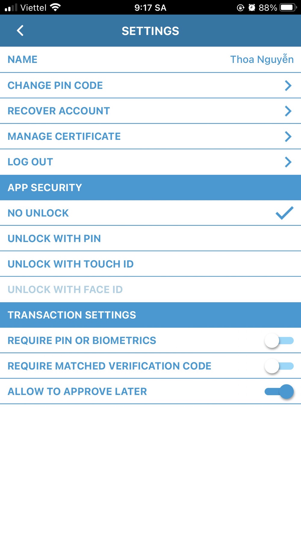 - TOUCHID, FACEID OR PIN CODE FOR UNBLOCKING ACCESS TO THE SECURE