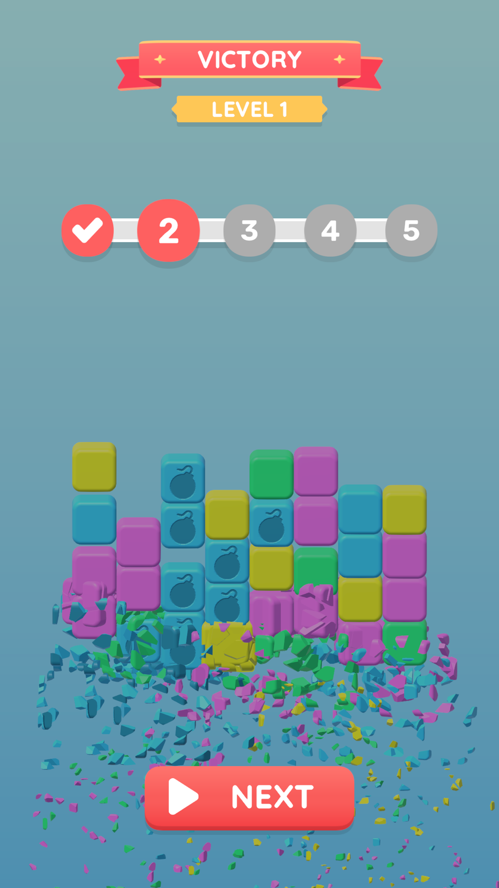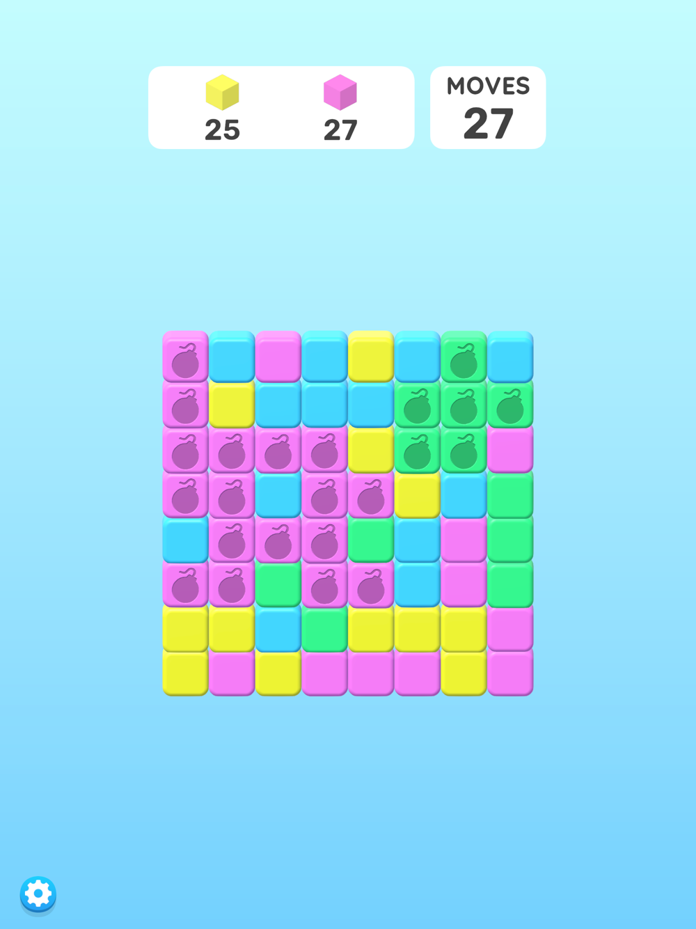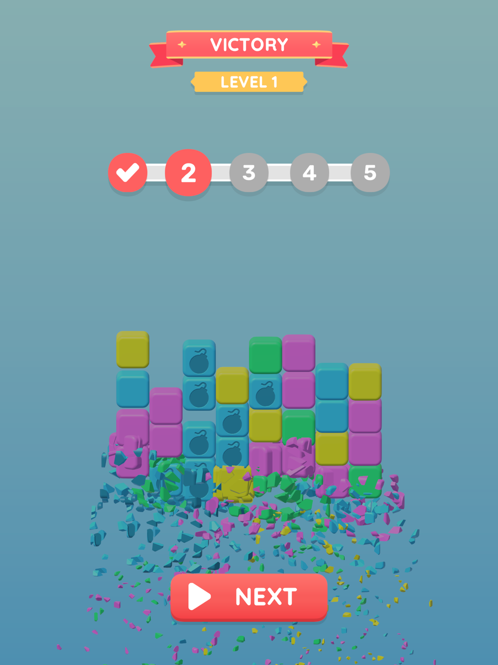 Tap any cube to pop! Every cubes of the same color next to it will pop too!