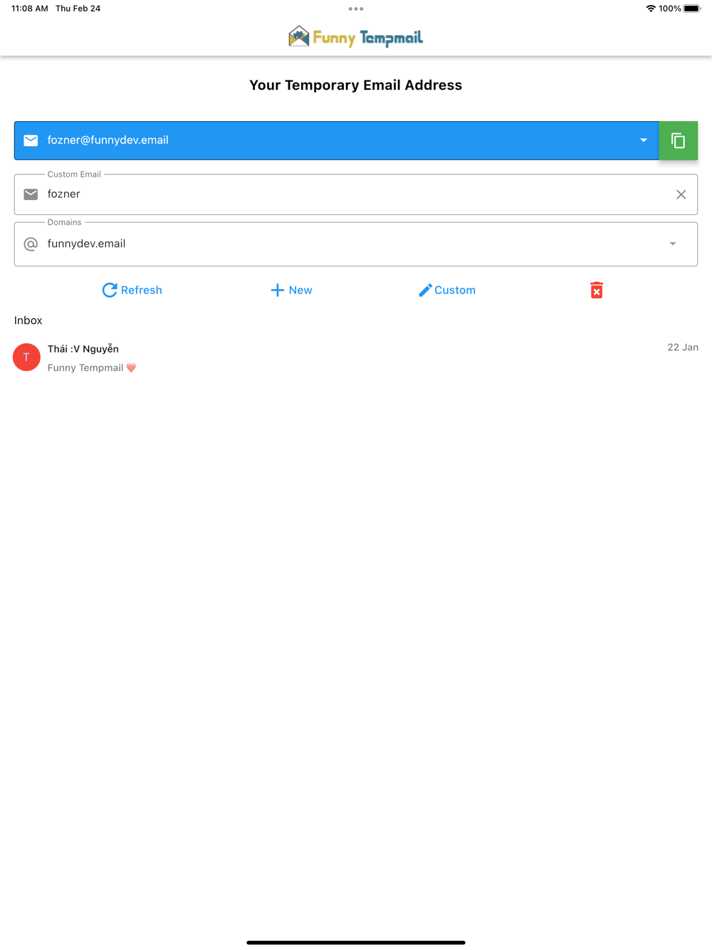 Funny Tempmail is an application that allows you to create any virtual email with a permanent expiration date and rich domain name without signing up for a real account.