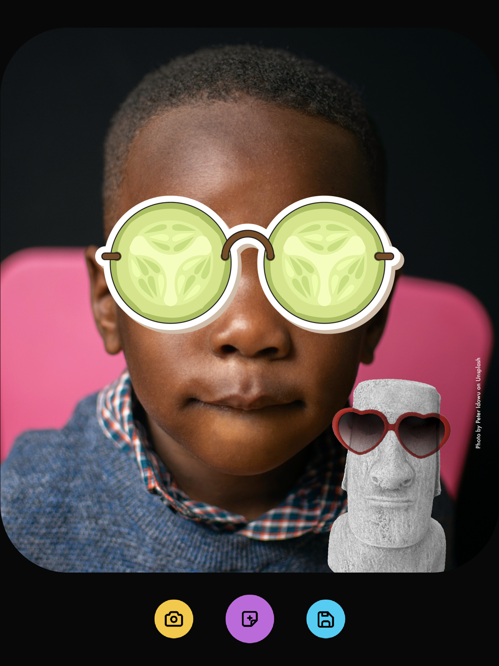 Baixe e instale o aplicativo, tire uma foto e aplique os stickers da sua maneira. São várias opções e infinitas possibilidades, solte sua imaginação.