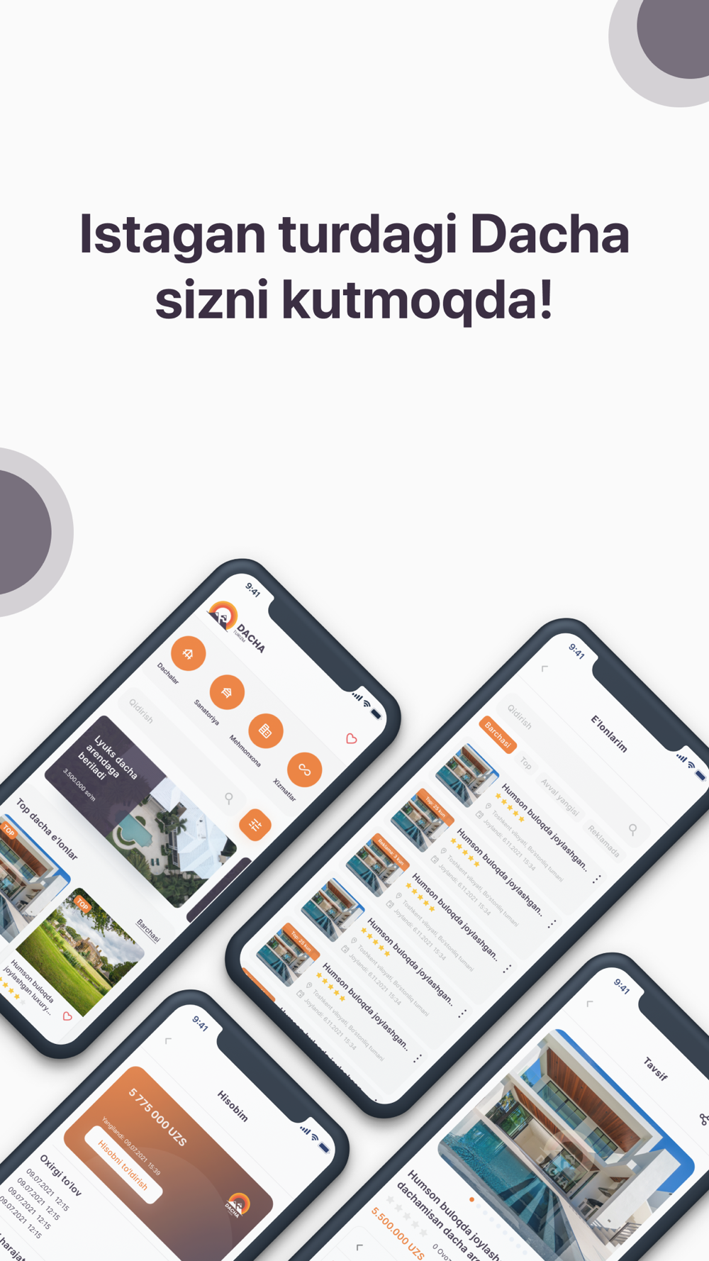 Простое приложение,которое поможет вам путешествии! Лучшее приложения,легко найти дачи на любой вкус вы Узбекистана!!!