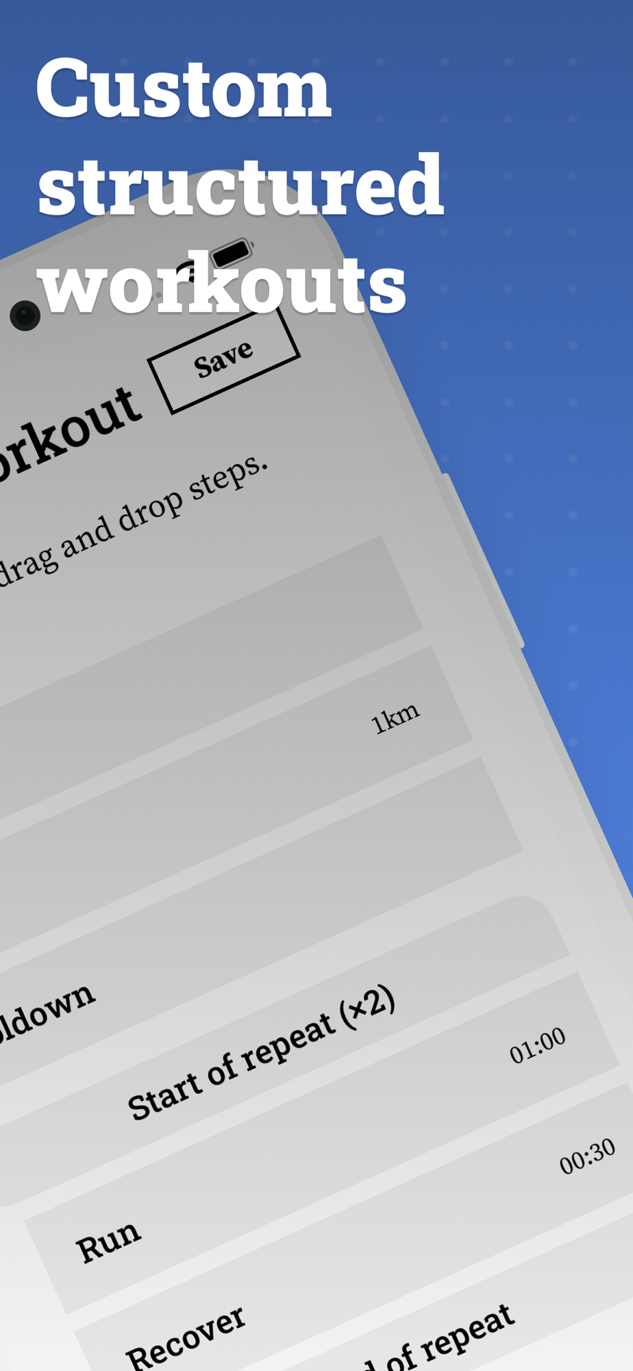 — Create complex custom structured workouts with intervals, warmups, cooldowns, recovery, and more.