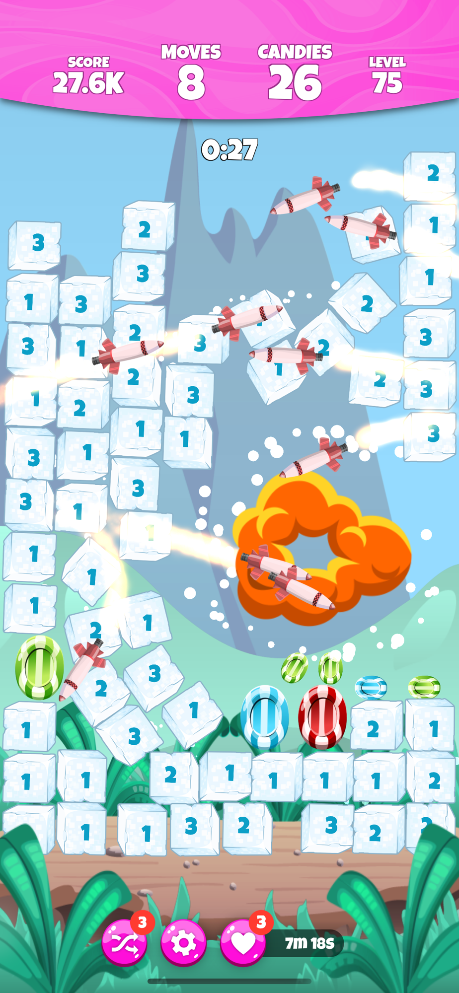 Sugary explosions abound in this exciting collect-the-candy game. Merge sugar cubes to create bombs, clearing the way for delicious sweets falling from the sky.