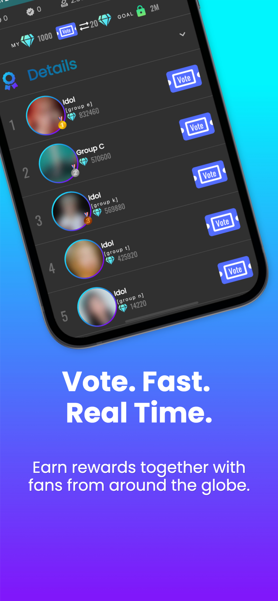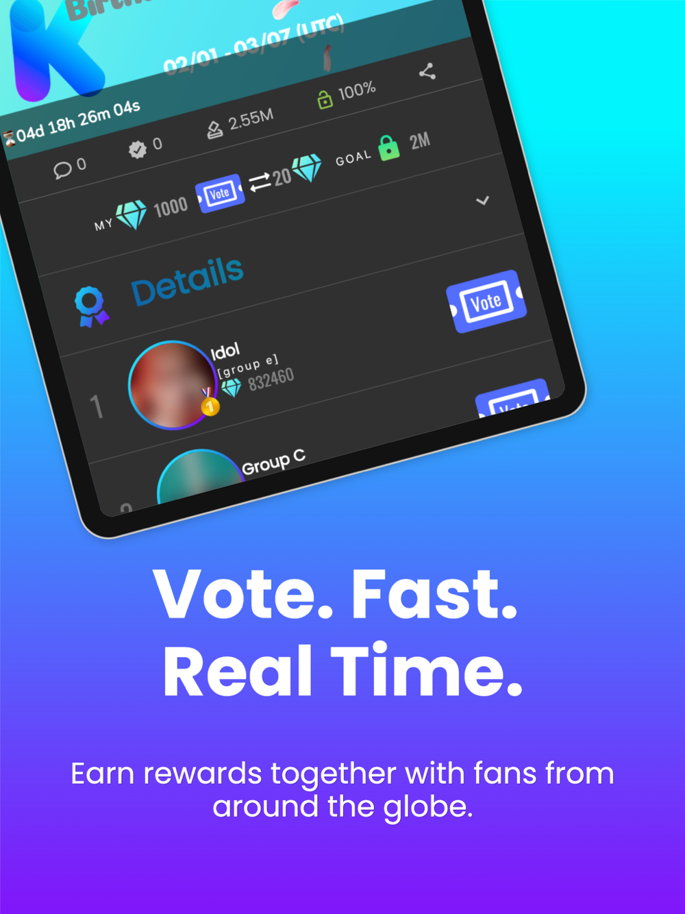 Have fun with iKPOP real time platform developed for all worldwide K-POP and J-POP fans. Everything you need to stan your favorite idols. The most dedicated fans can win rewards by voting or other activities for their faves without any charges every day!