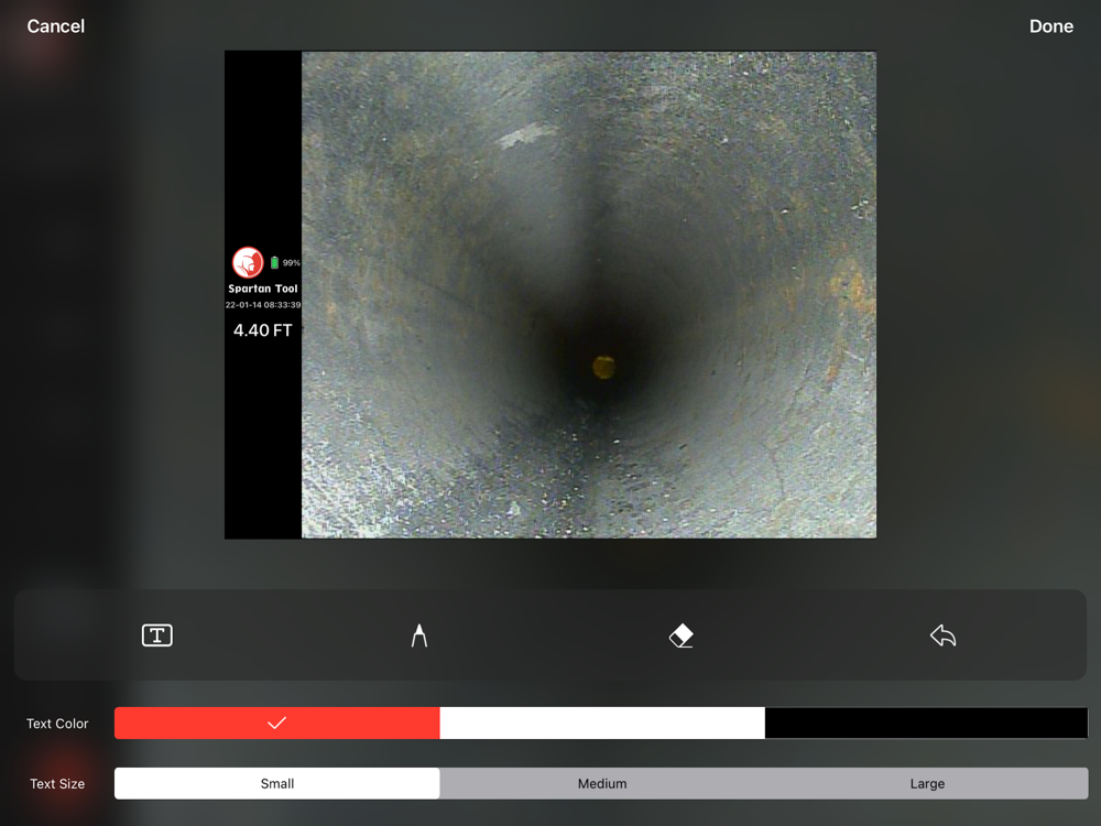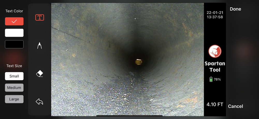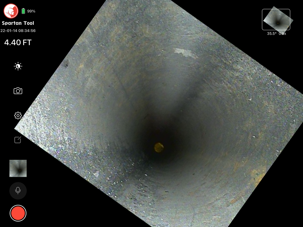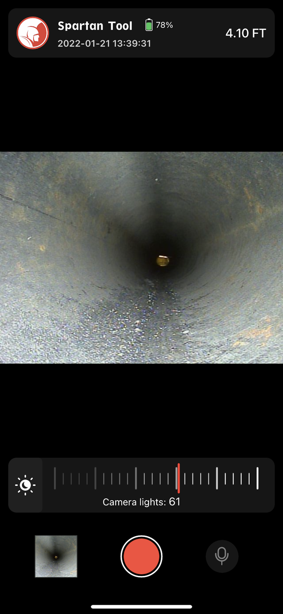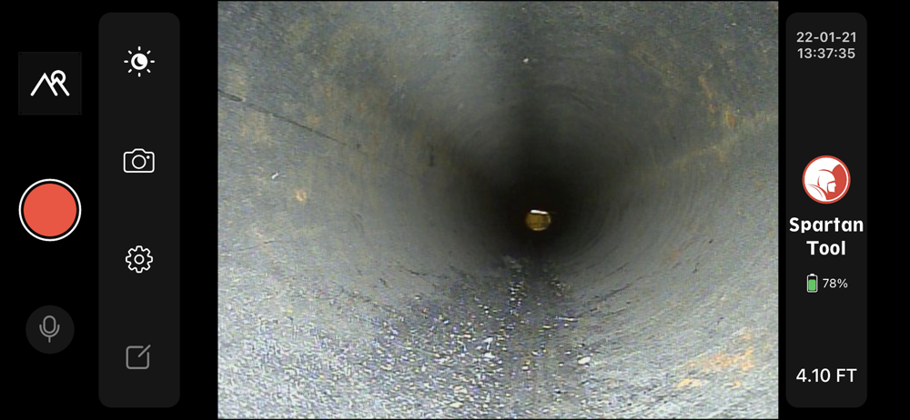 The Spartan Vision app is designed to work with Spartan pipe inspection cameras. Spartan Vision features a user-friendly interface to make your inspection jobs a breeze. Rotate and zoom your view with on-screen controls and one-touch reset for optimizing your view inside the pipe. Adjust the camera’s LED intensity with simple controls for better visibility. Easily add on-screen text notes, record audio voiceover narration for your video files, and take screenshots directly in the app.