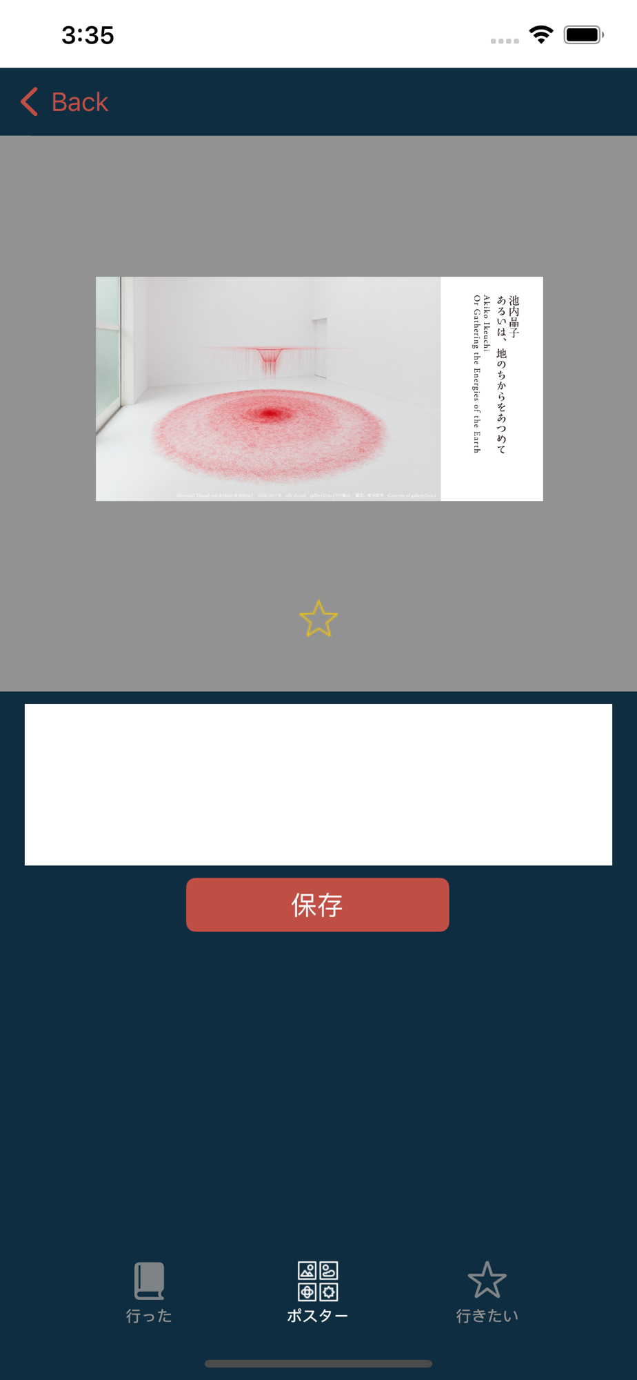 「行った」美術展のポスターをメモと一緒に記録することができます。