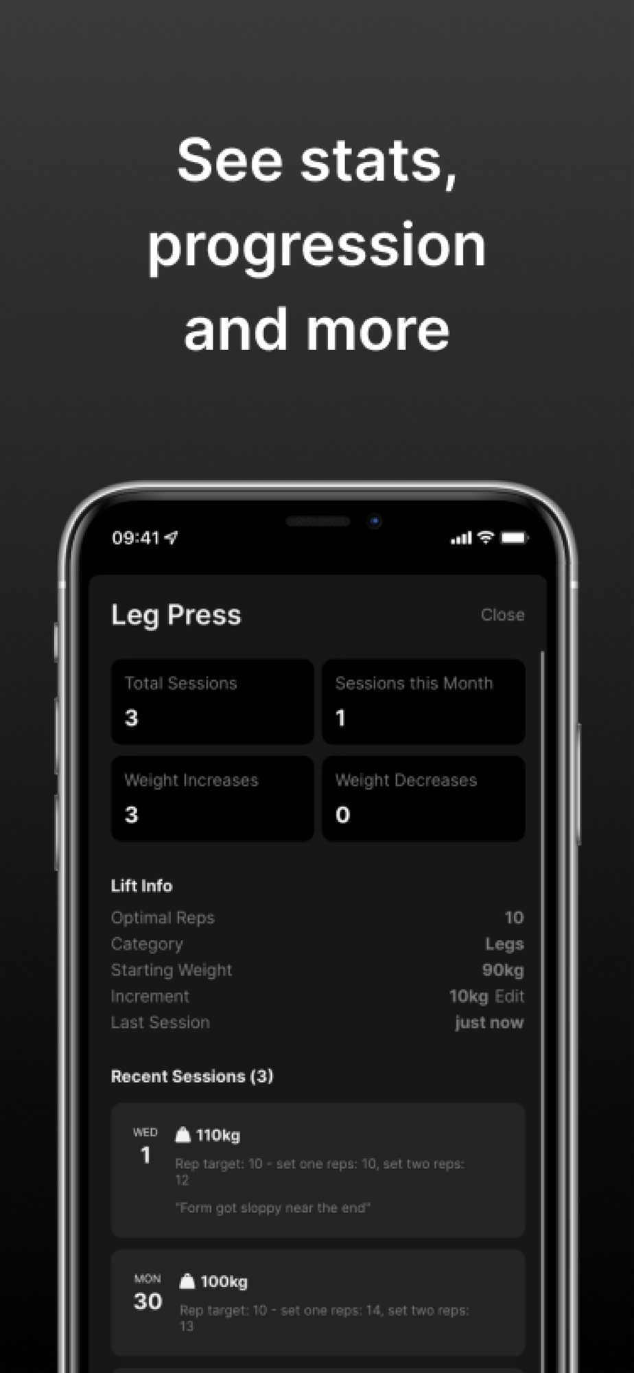 Uberlast helps you progressively overload on all your lifts, keeping you in optimal rep ranges while keeping your progress in check.