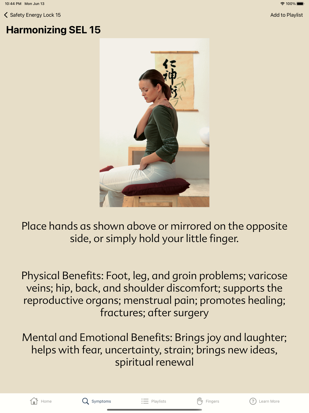 This App is based on the popular Health Is in Your Hands book-and-card-set by Waltraud Riegger Krause. It is our mission to make this phenomenal and affordable healing art available to everyone, everywhere. Simply look up a symptom, and a picture will show you the ‘flow’ - the appropriate hand placement or finger hold - for easing your symptoms by harmonizing your body, mind and spirit. Place your hands on your body and set the flow of healing in motion. You can create your own playlists with your favorite flows, and practice them, with or without relaxing music, wherever and whenever you choose. Turn your daily commute, drive, flight, break, or time off into a time for self-healing. You might also add your favorite JSJ flows to your meditation or yoga practice, which will greatly enhance your experience of healing and relaxation and contribute to alleviating specific disharmonies.
