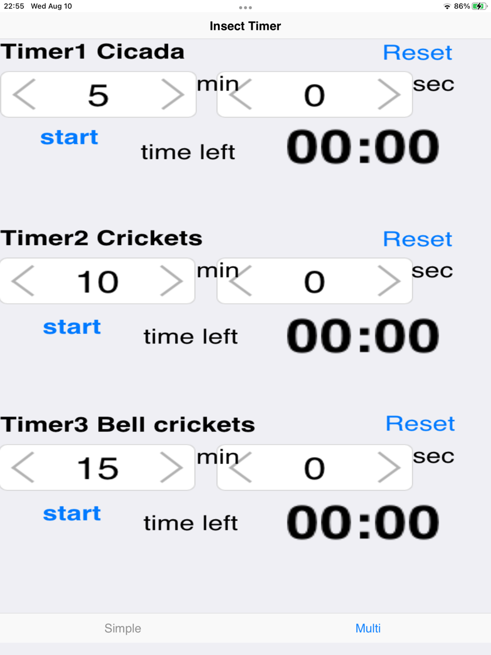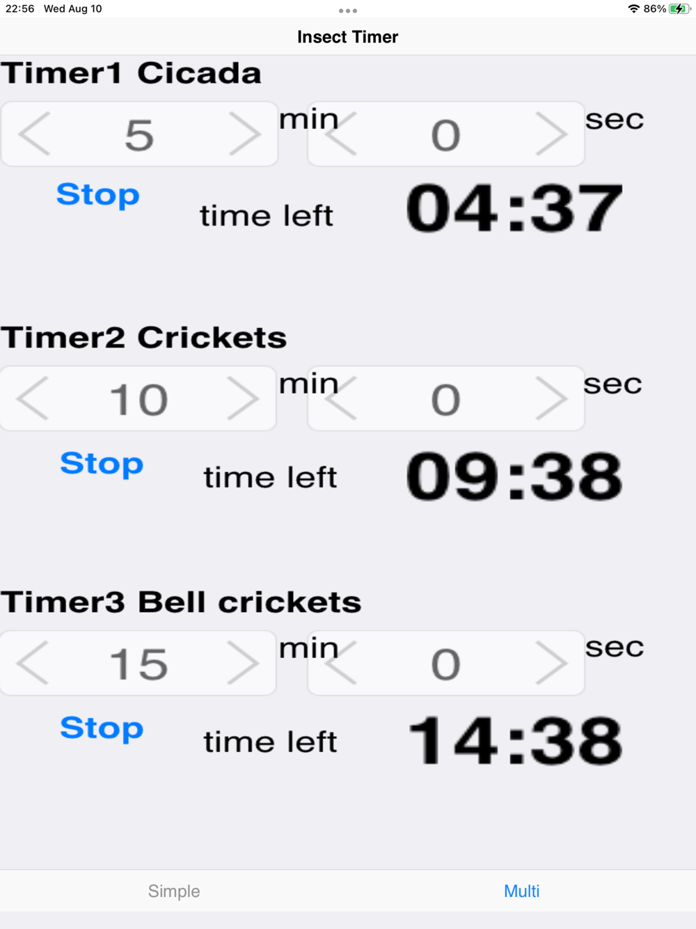 A timer that notifies you with insect sounds (cicada, crickets,bell crickets) when the set time comes.