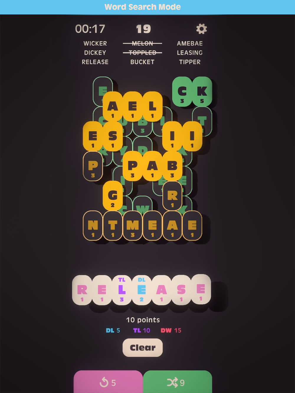 • Timed Mode: Can you beat the clock? Find as many words as you can before the timer runs out