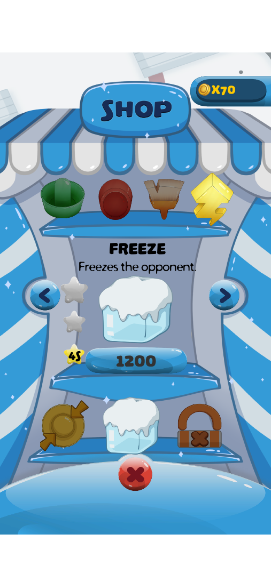 One-Player Mode: Play against your phone and challenge the AI. Choose one of the three difficulty levels: Easy, normal, and hard.