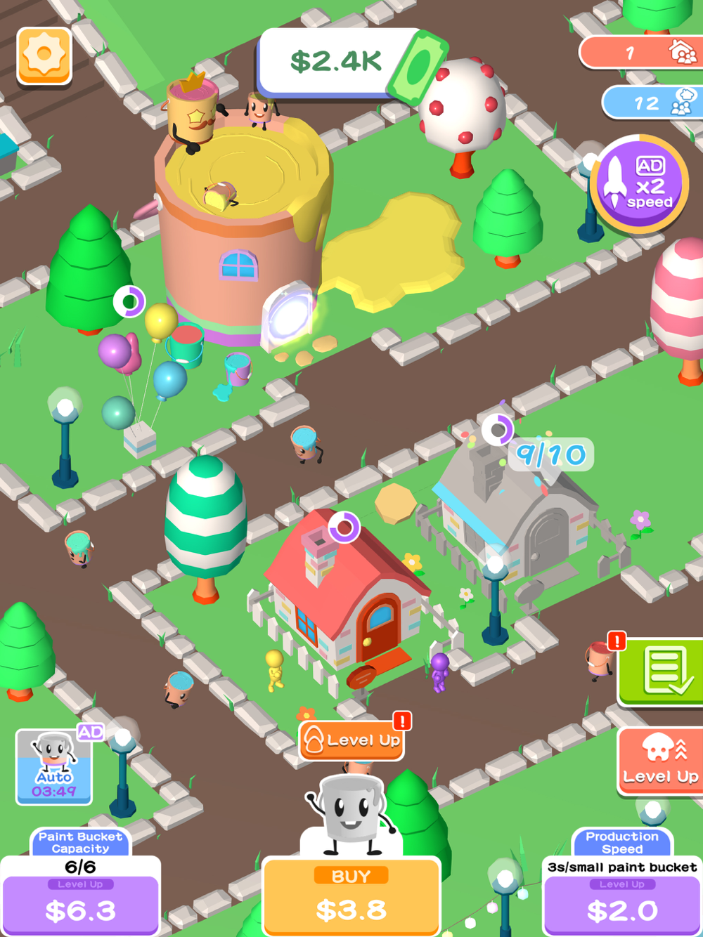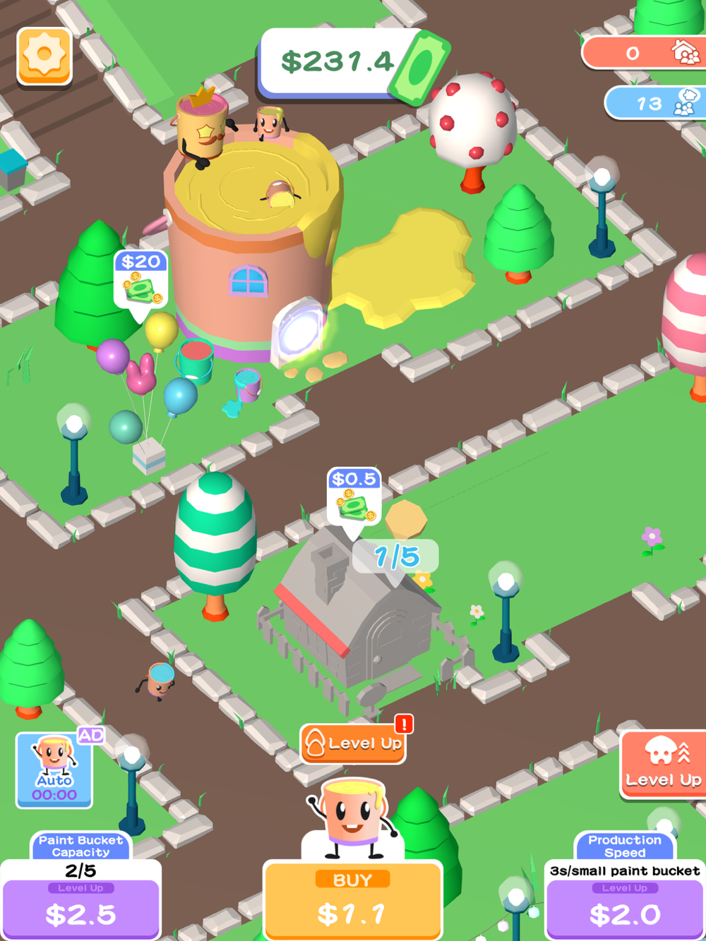 You will need to unlock paint buckets to paint the buildings, but you must exchange them for money to do so.