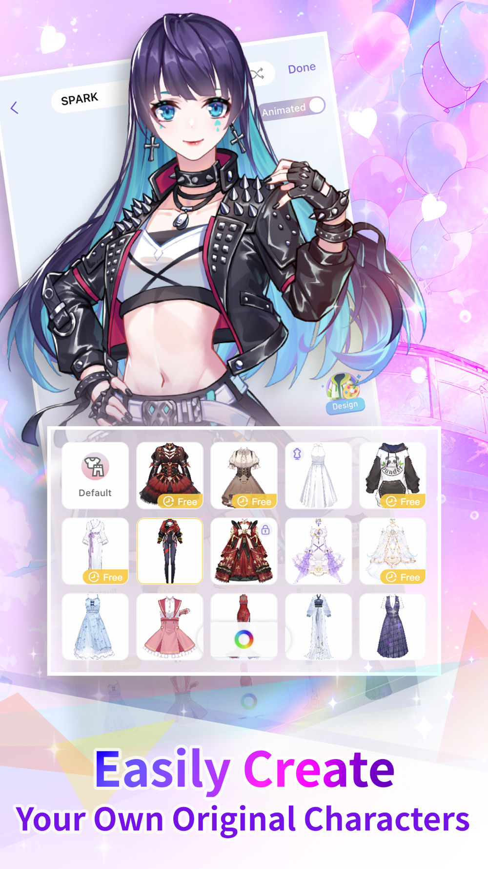 ● Limitless character customization: Design your OCs with countless hairstyles, eyes, outfits, and accessories inspired by anime and manga styles.