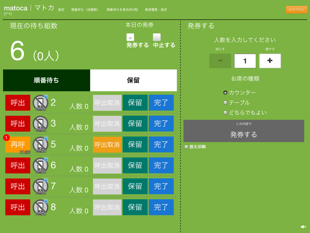WebPrintは「matoca」サービス、「yoboca」サービスと連携して、呼び出し機能と整理券印刷機能を提供するアプリです。