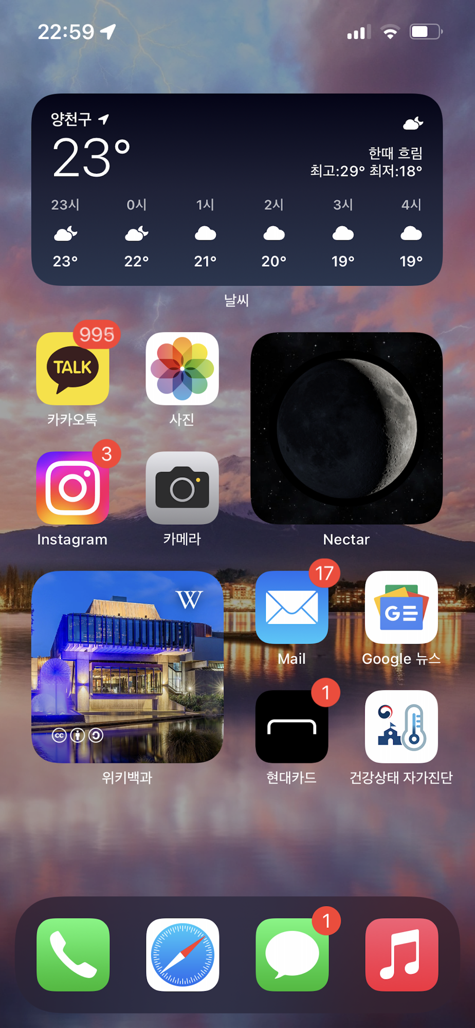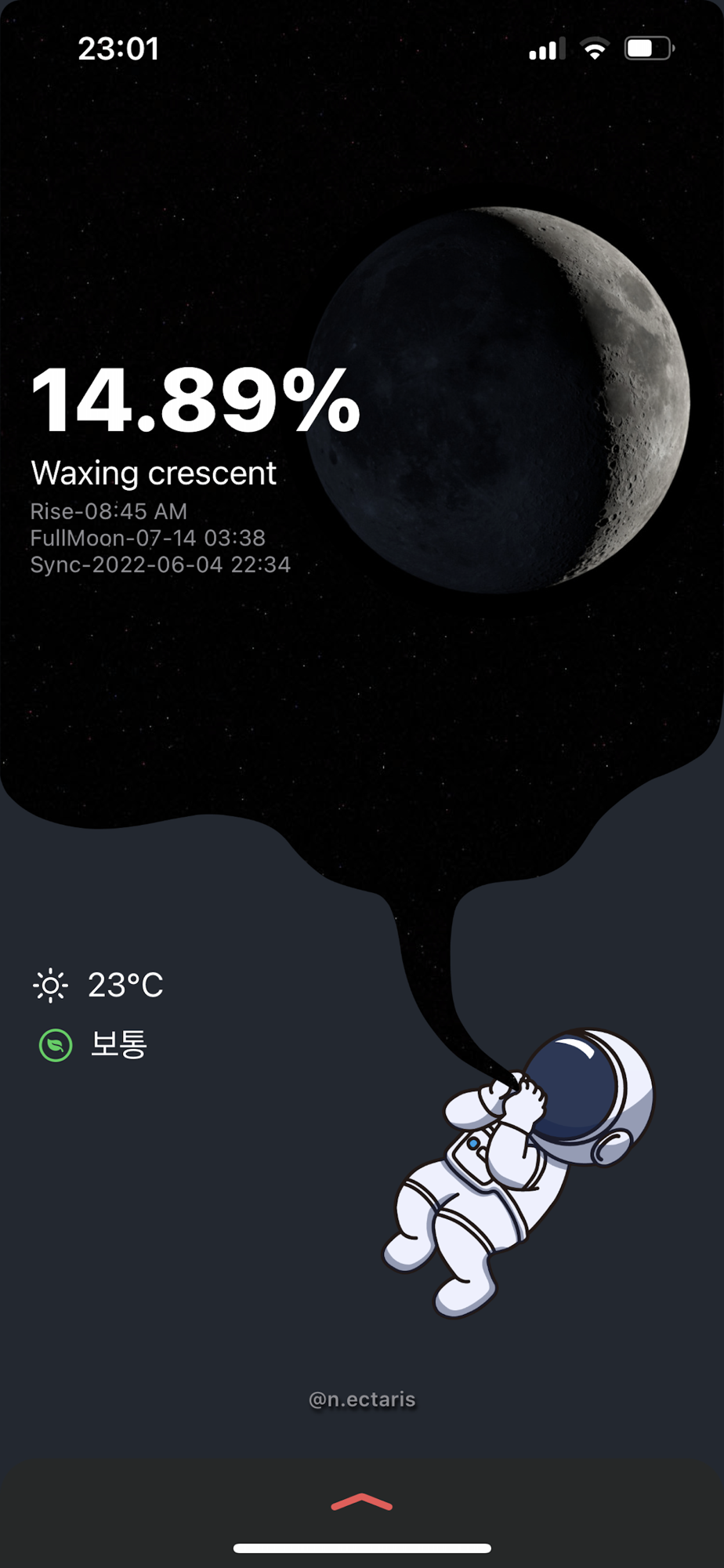 달의 위상을 표현하는 위젯과 달의 밝기, 다음 보름달 등 다양한 정보를 제공합니다.