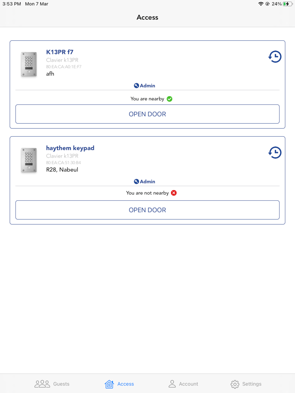 Avec Smaart Access la programmation des codes d'accès de vos claviers Smaart est facile et rapide. Codes - Plages horaires - temps d'ouverture, événements : Tous les paramètres sont accessibles en quelques clics. Smaart Access dispose en outre d'une fonction unique permettant de réveiller votre télephone à l'approche du clavier.