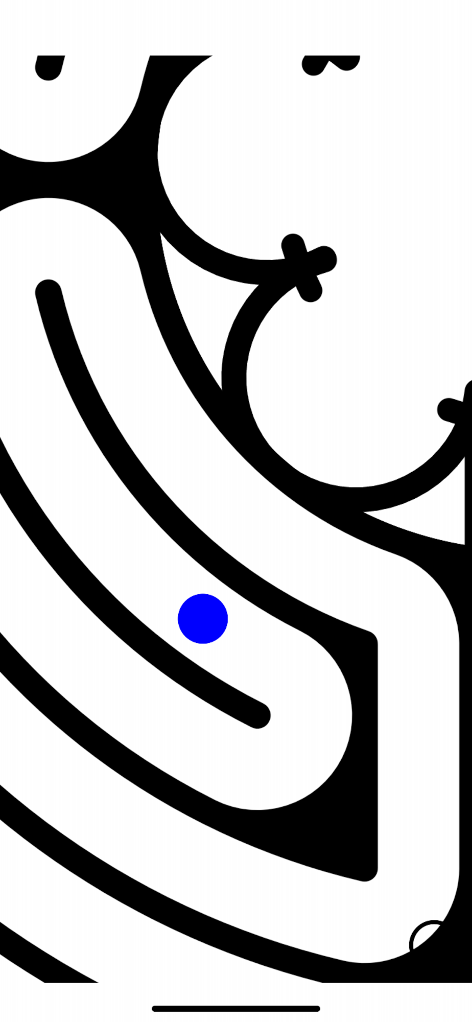 Using a drag gesture, you can move the dot along the path of the labyrinth, first from the outside to the center, and then back out again.