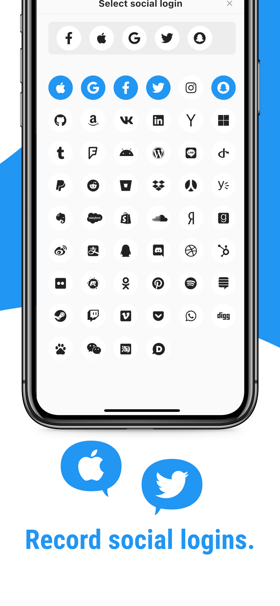 - You can also record your social logins. This solves the "I forgot which social login I used" problem.