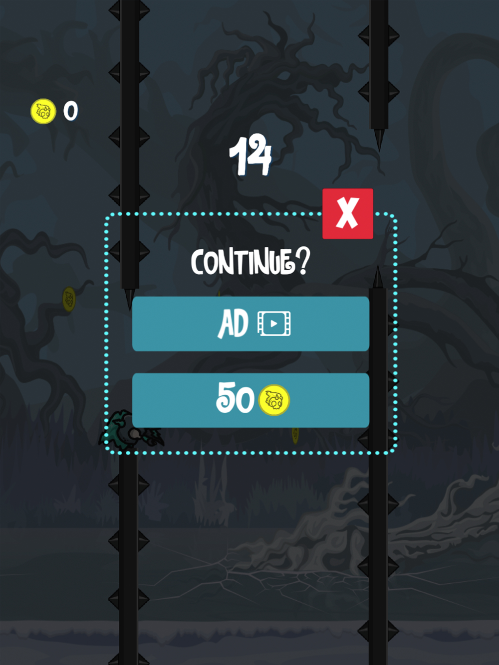 Reach the highest score possible with this 1-tap casual game, collect coins to be able to use them to continue a game after death, and share a screenshot of your best score on your social media to engage with friends!
