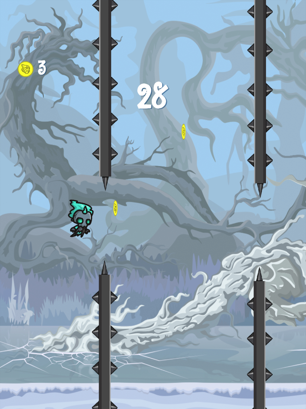 Daimon is a little creature lost in the Land of Ghosts, you must help him fly as far as you can!