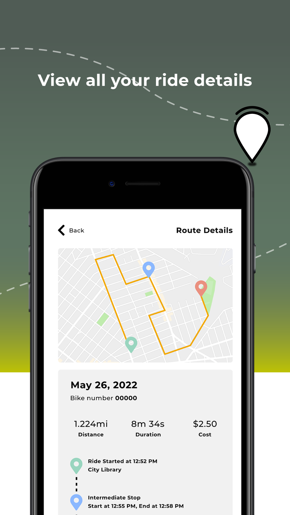 - Keep track of your previous rides, total miles ridden, and more with the app.