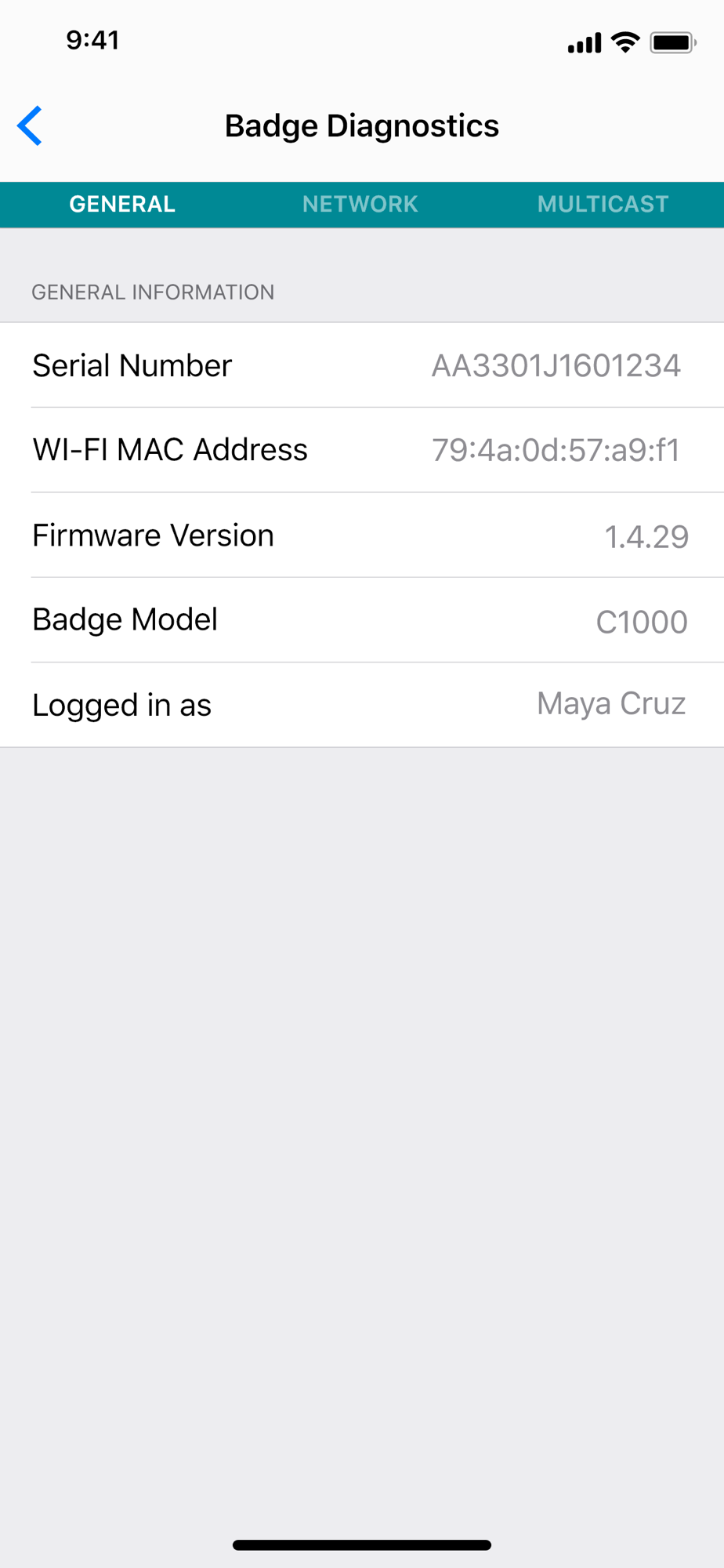 • See device information such as firmware version, serial number and Wi-Fi MAC address