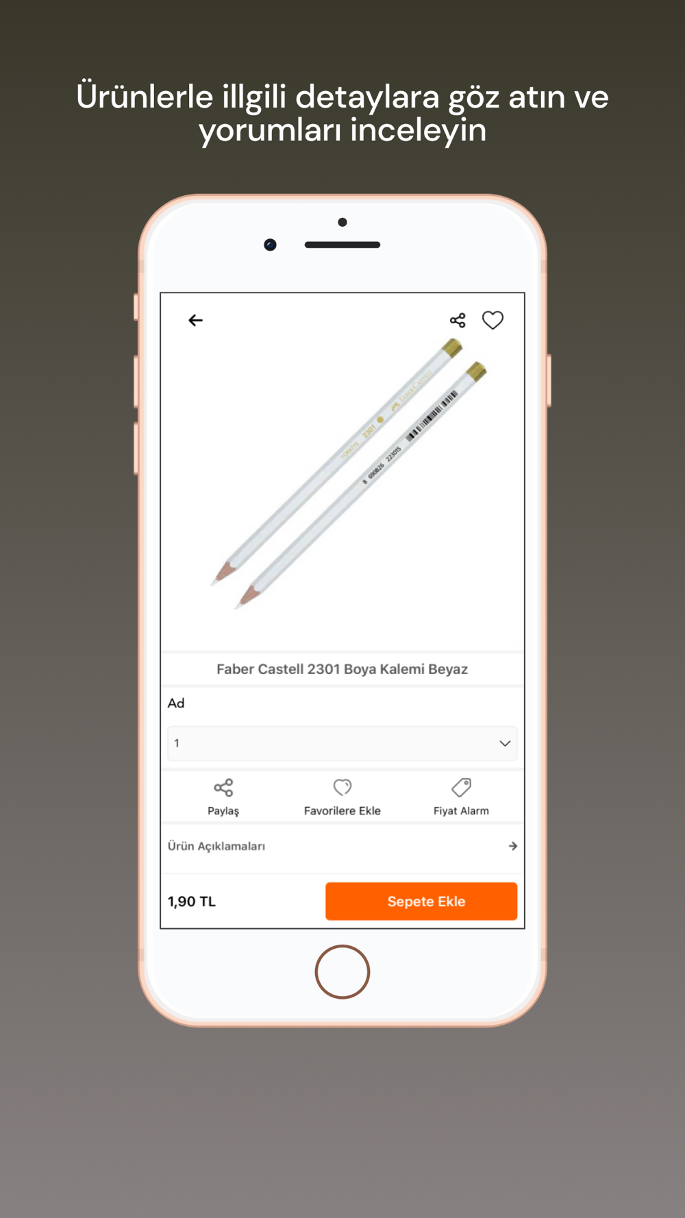 Beğendiğiniz ürünleri favorilerinize atarak takip edin. Fiyat alarmı sayesinde favori ürünlerinizde indirim olduğunda ilk siz haberdar olun.
