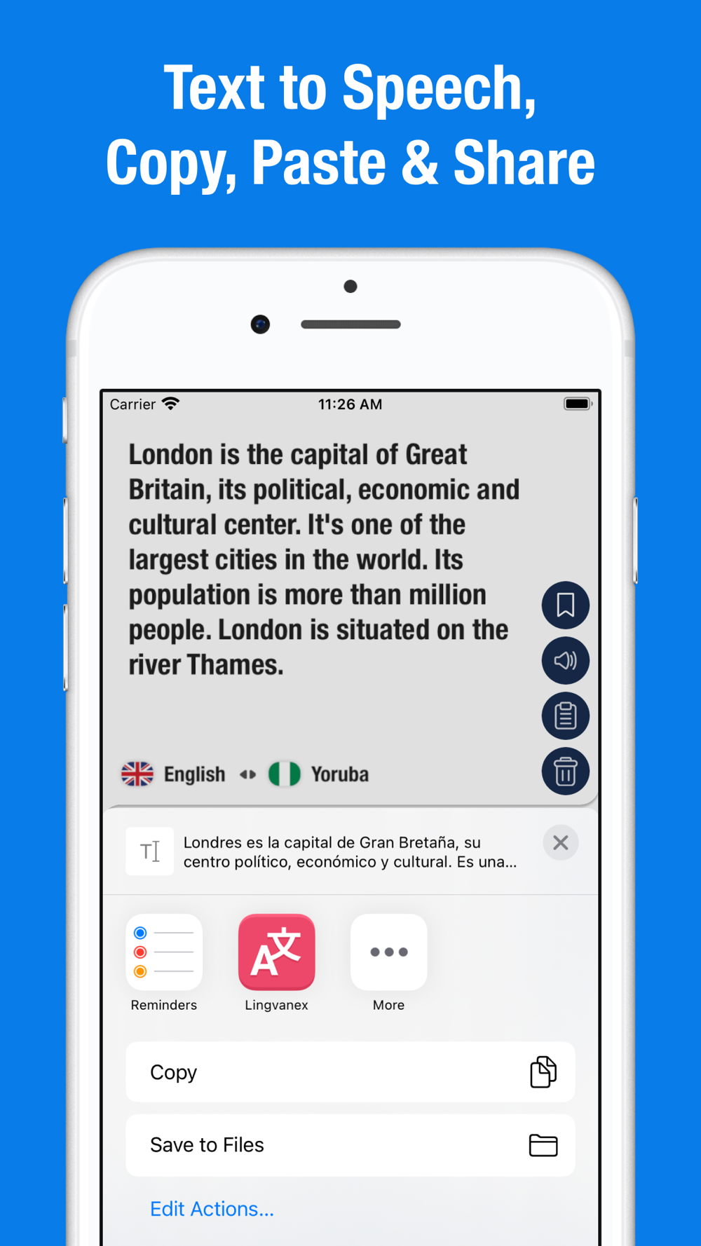 Quality useful application that helps to translate words into English or Yoruba with one touch. Perfect for schoolchildren, teachers, students, adults, travellers and for anyone who is interested in studying foreign languages.