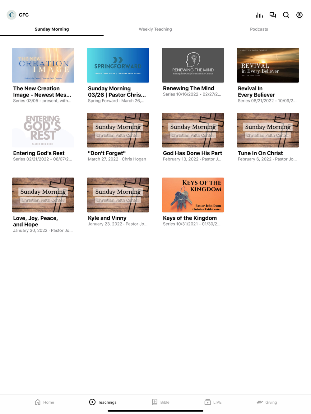 We have multiple services and ministries that meet throughout the week to build up the faith of believers through the Word of God. Check out the "This Week at CFC" section to find the one that's right for you!