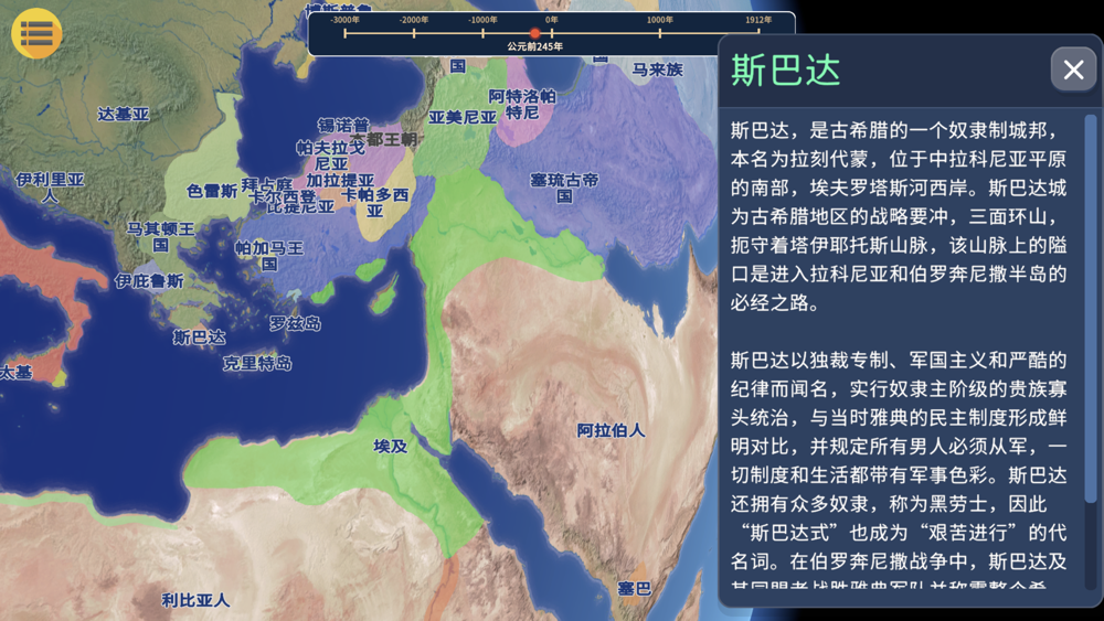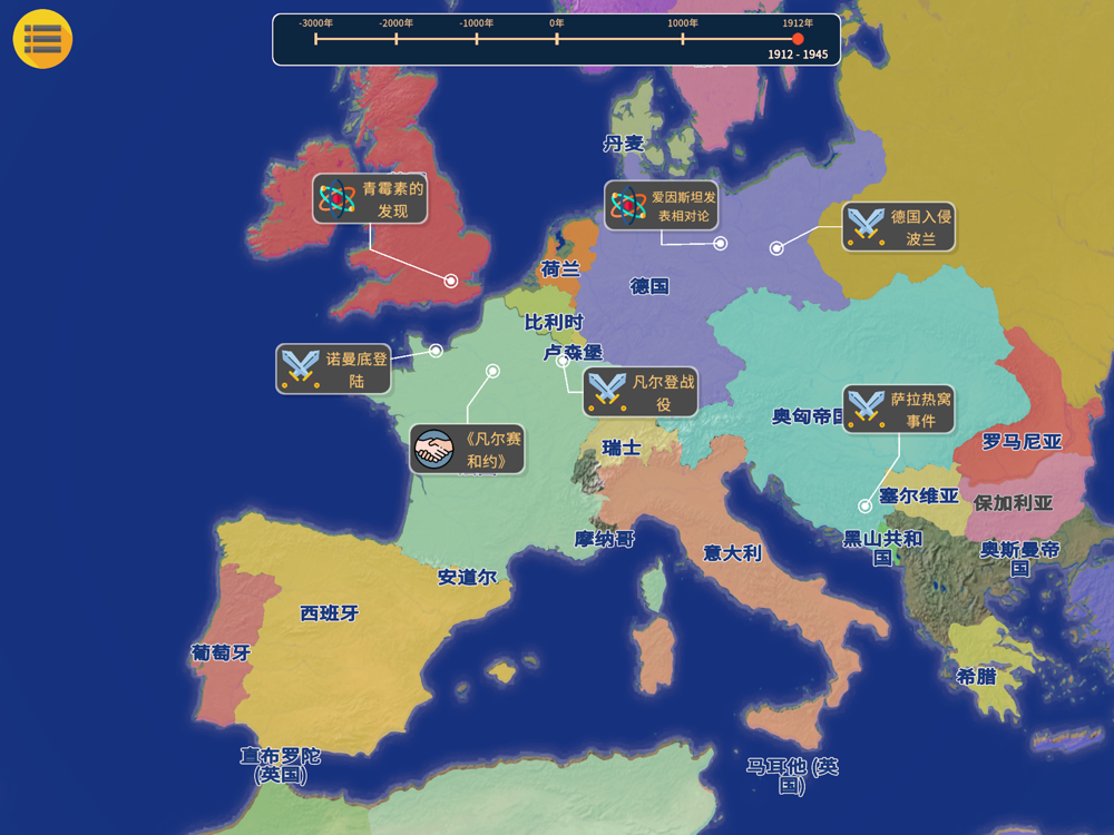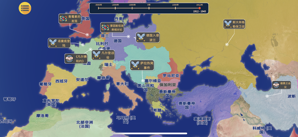酷玩世界历史,清晰地呈现全方位、逐年变化的疆域。历史事件的时间不再是简单的数字,古代各国也不再是分裂的名词。世界五千年,尽在酷玩世界历史。
