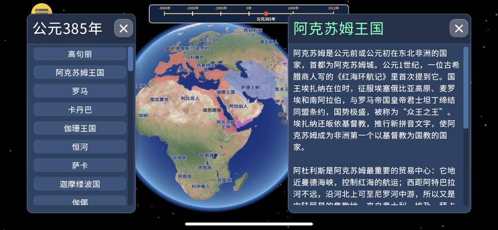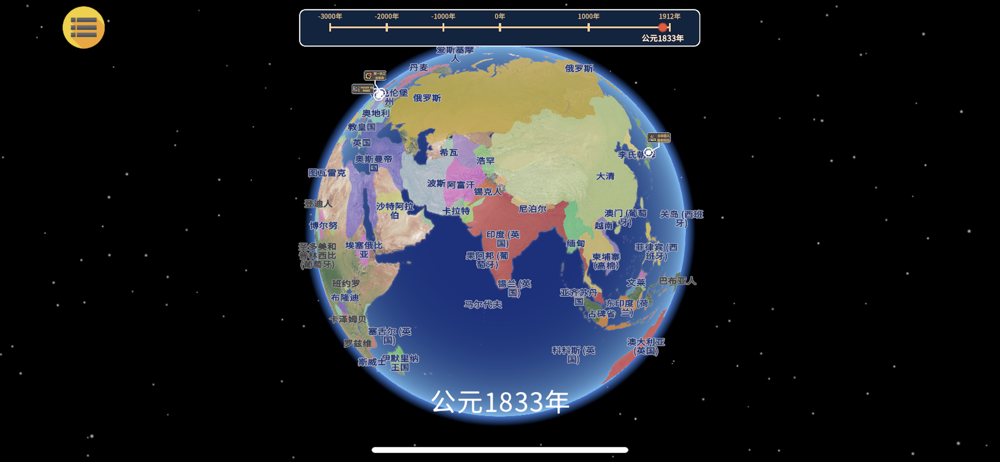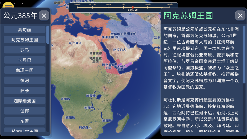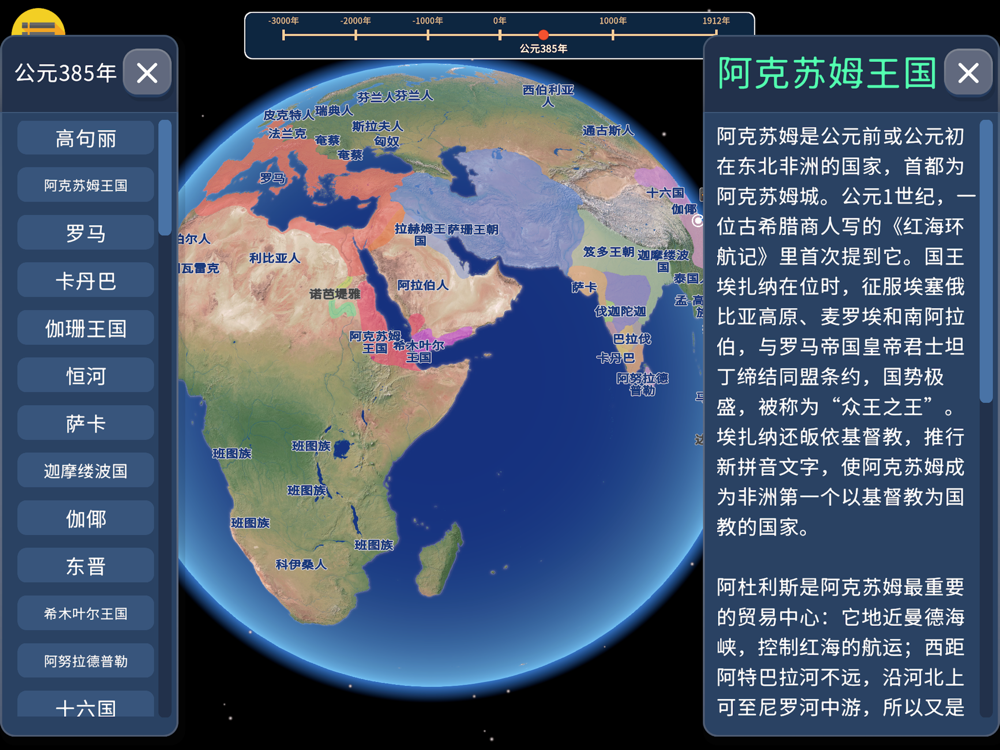 酷玩世界历史含有长达5000年的世界各个王朝疆域变化。以互动的地球仪形式呈现,详细的时间轴可以带你前往5000年中的任意一年。