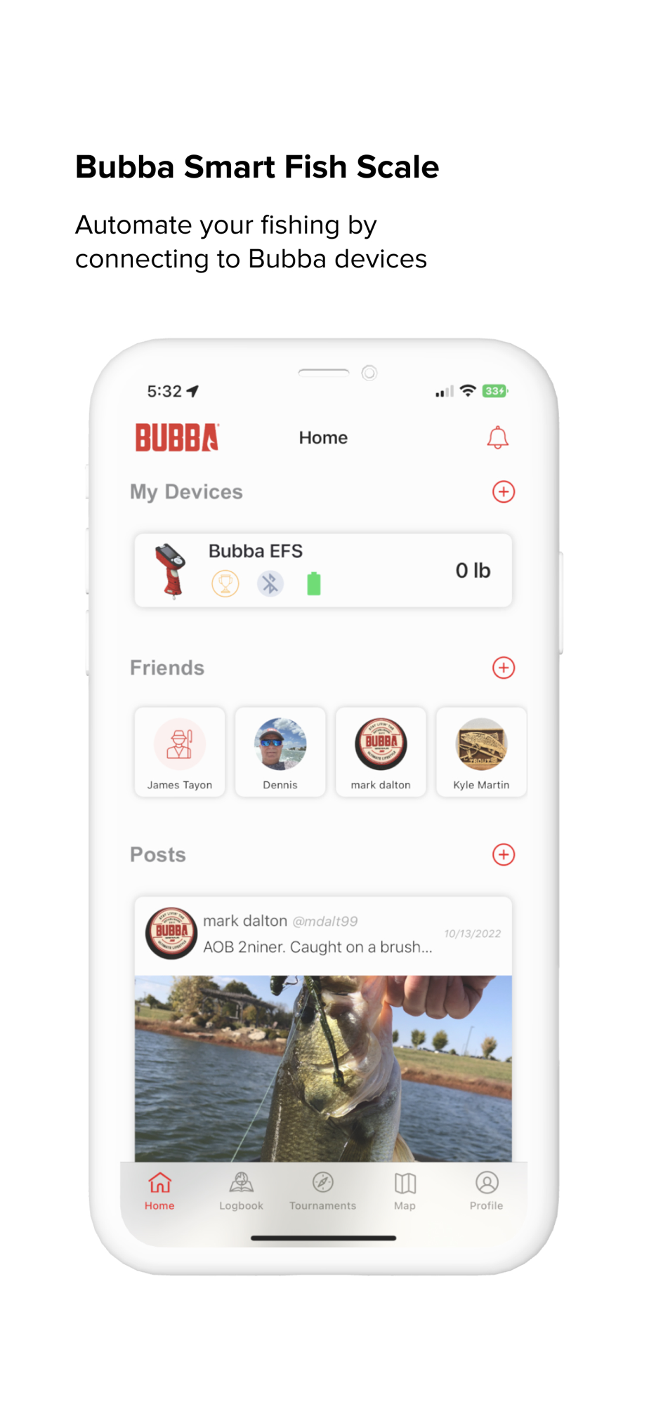 Experience fishing like never before with BUBBA - the ultimate freshwater and saltwater fishing app. Connect to our smart fish scale and effortlessly log every catch, every trip, and every waypoint. BUBBA has everything you need to take your fishing adventures to the next level: