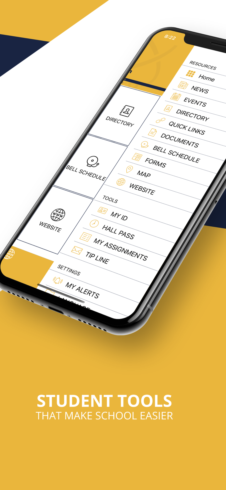 - Student tools including My ID, My Assignments, Hall Pass & Tip Line