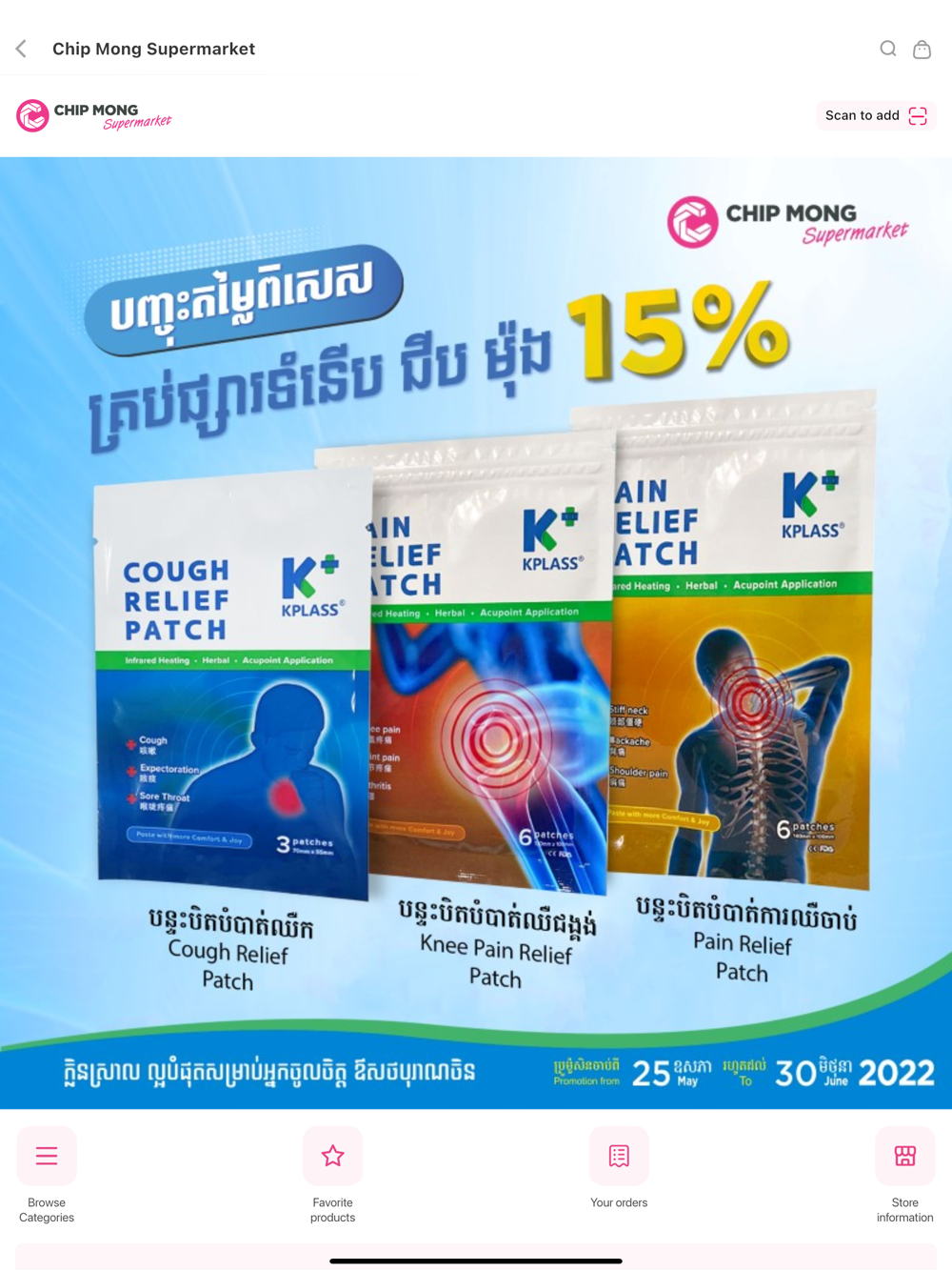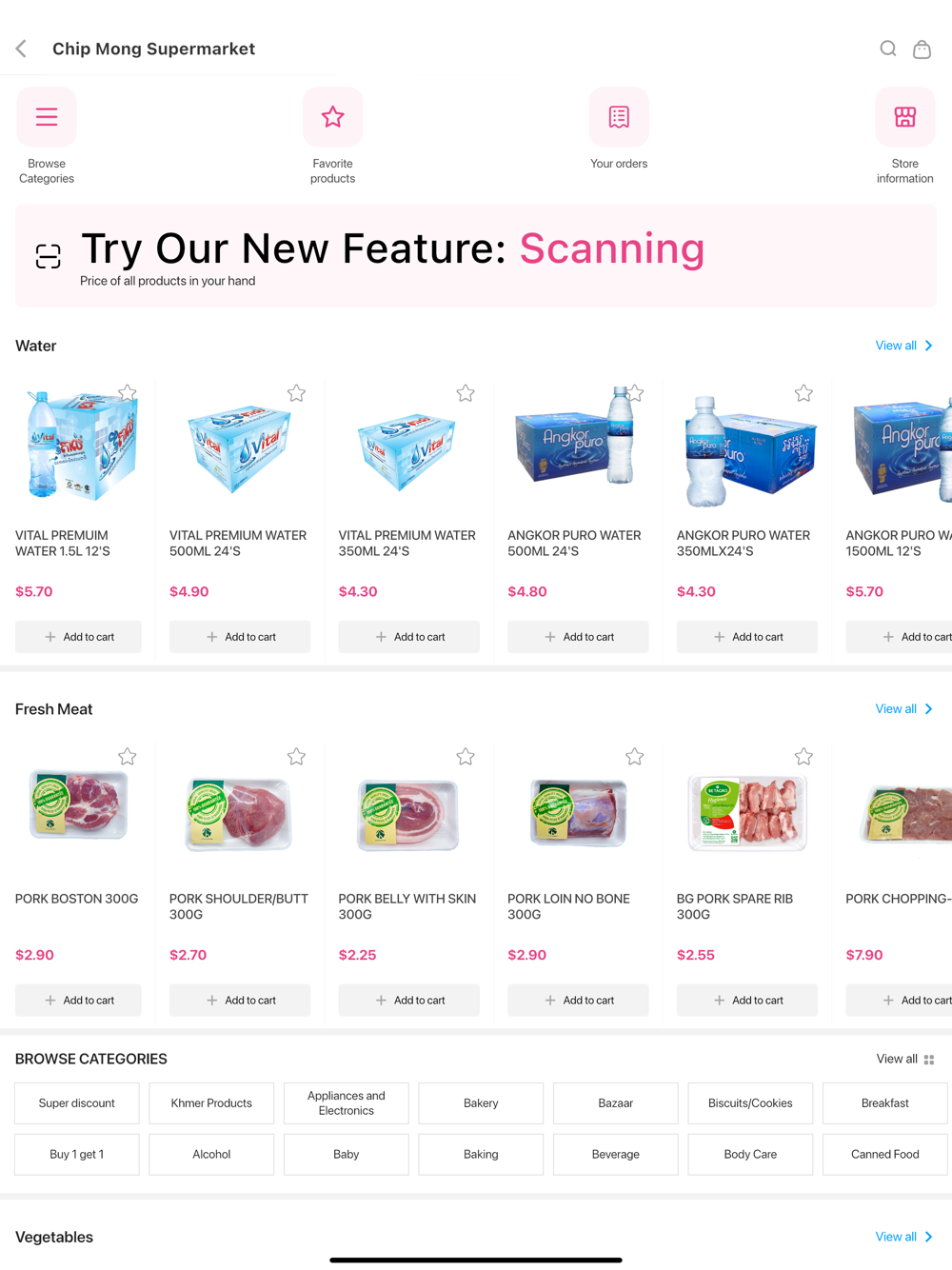 - 5 convenient ways to order (browse product by category, search by name, scan barcode to add, take items from your favorite list and reorder from your previous purchases)