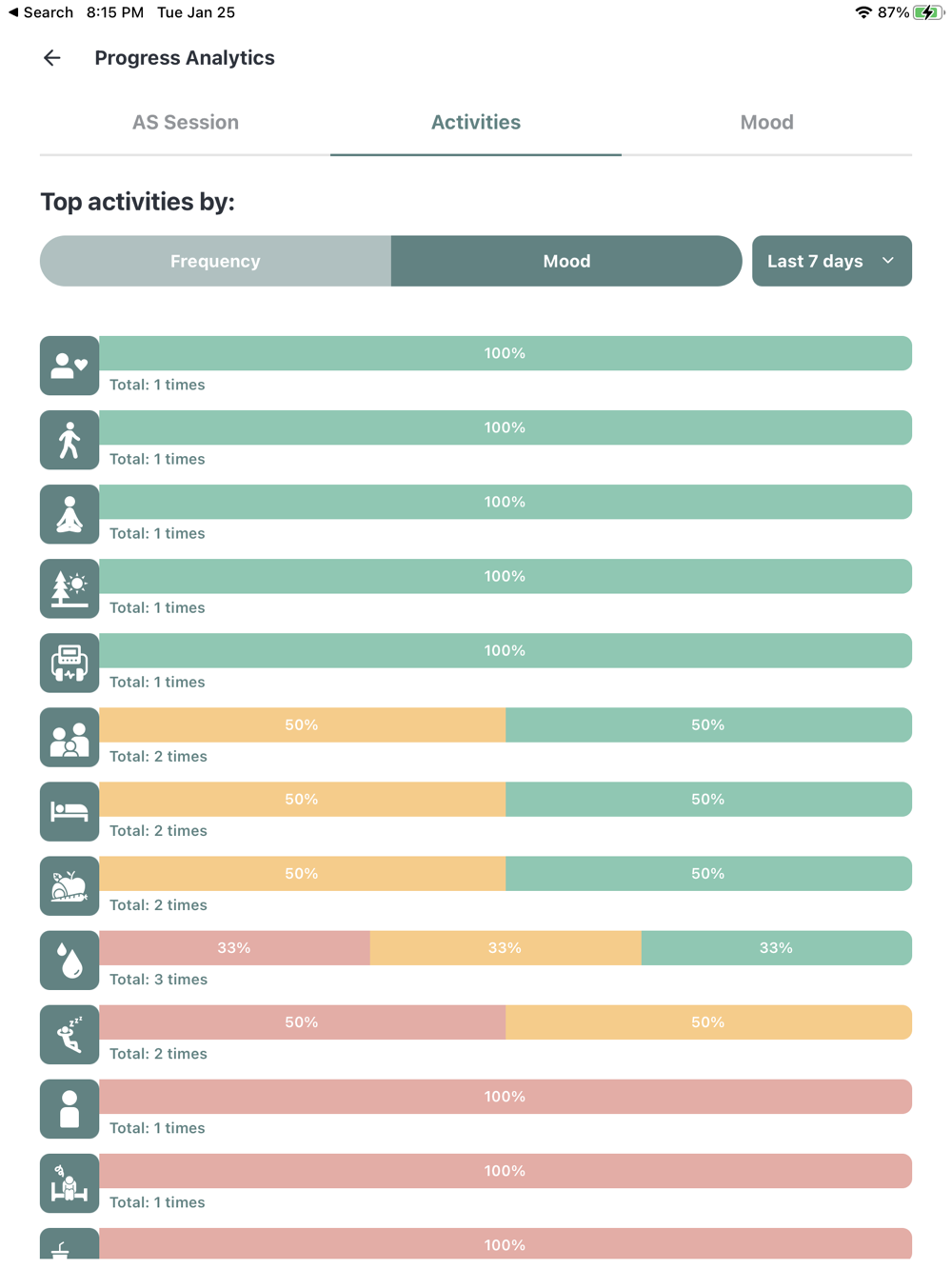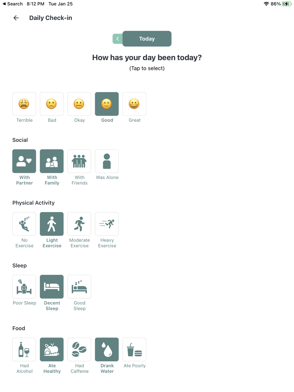 Beyond using your Alpha-Stim, there are other activities that have an impact on mental health. With daily check-ins, you can keep a journal of your activities and mood without having to type a single line.