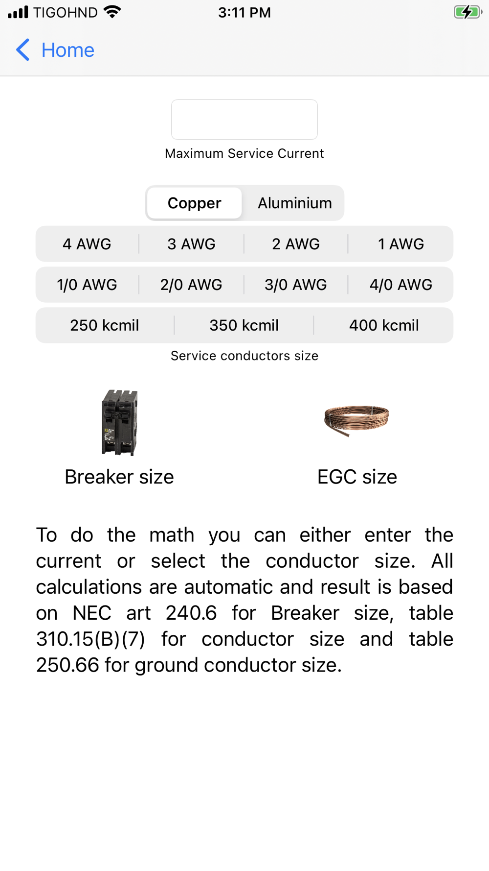 Calculate branch, service and feeder wire size, breaker size, conduit size.