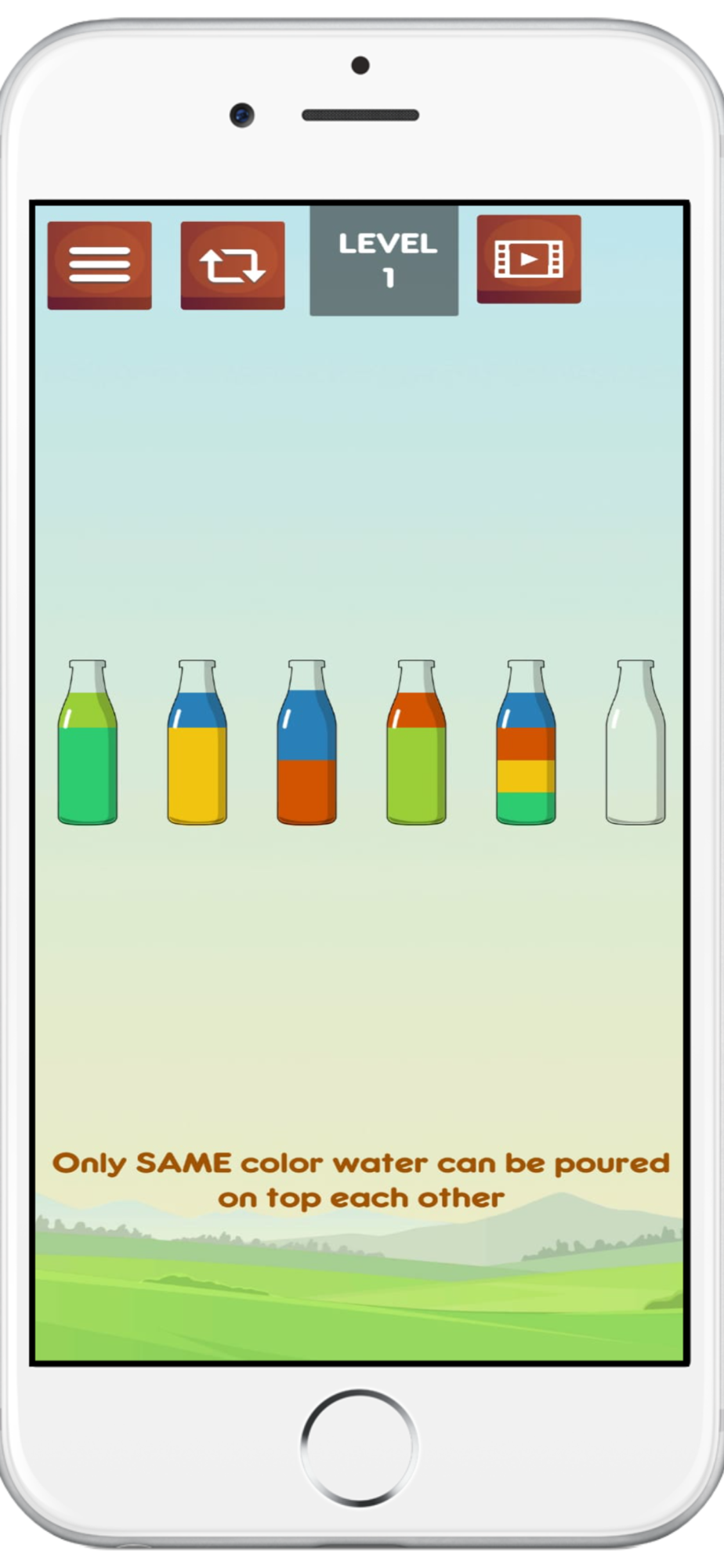 • You can win if you successfully fill same coloured water in the entire bottle.
