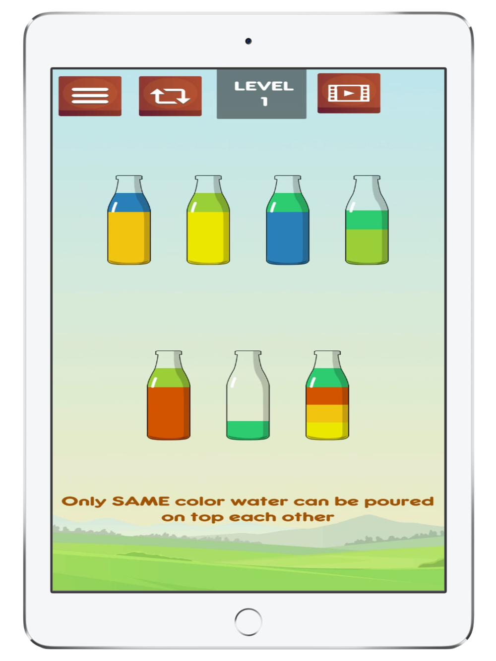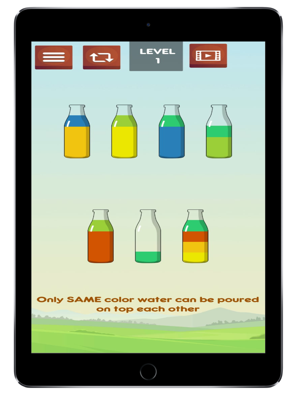 • You can only pour the water if there is same color and quite empty space in the bottles.