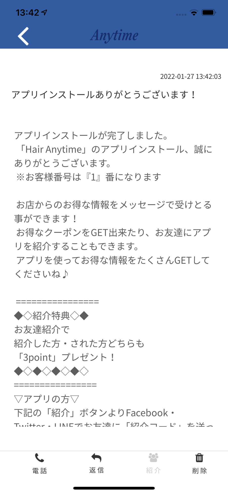 AnytimeのアプリをSNSを通じてお友達に紹介する事ができます。