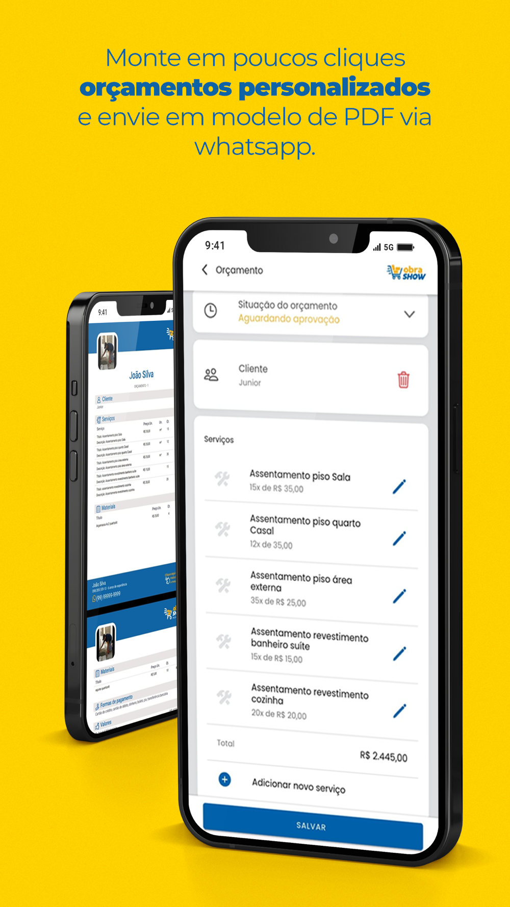 - Com o app o profissional cria e envia seus orçamentos de serviços de forma profissionalizada em PDF ou link, com sua logo e seus contatos, de forma simples e prática, para seus clientes via WhatsApp com um simples clique;