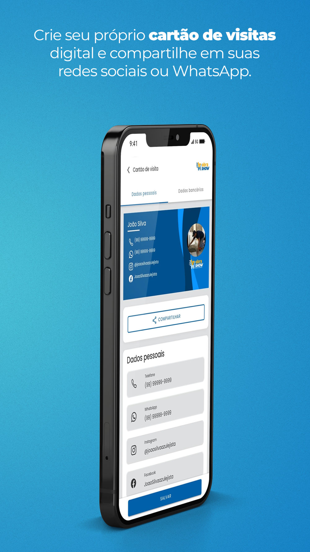- Crie seu cartão de visitas digital e compartilhe em suas redes sociais ou WhatsApp para conquistar novos clientes;