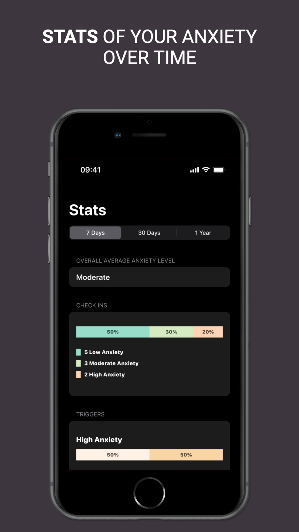 Anxiety Tracker & Log allows you to track your anxiety over time using check ins when you are feeling anxious. You can record a moment of low, moderate or high anxiety along with the associated triggers and symptoms you are experiencing. You can add a note for extra context. You can add as many check ins each day as necessary and then view the stats to see a breakdown of your overall anxiety level across the selected time period. You can also view a breakdown by number and percentage of your recorded anxiety levels to allow you to see what kind of anxiety you are experiencing in general.