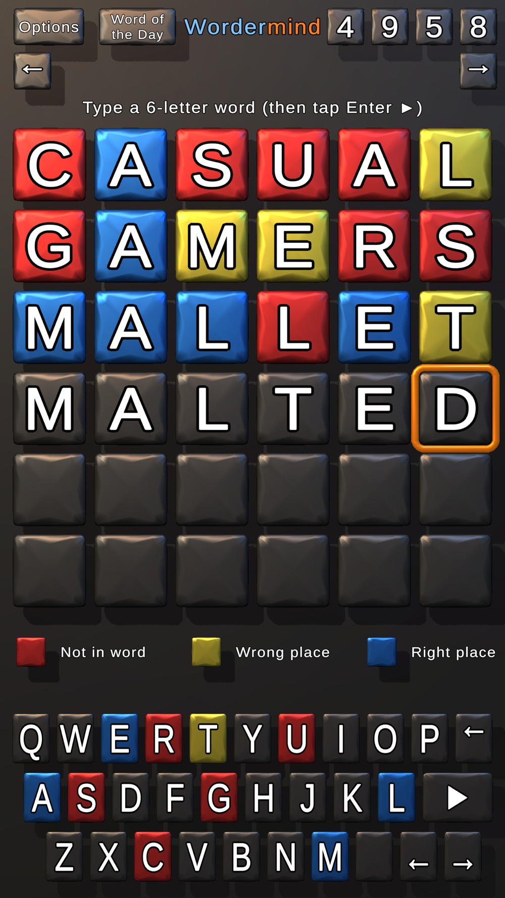 • Option to play without having to play valid words (free-play only - not available in Word of the Day)