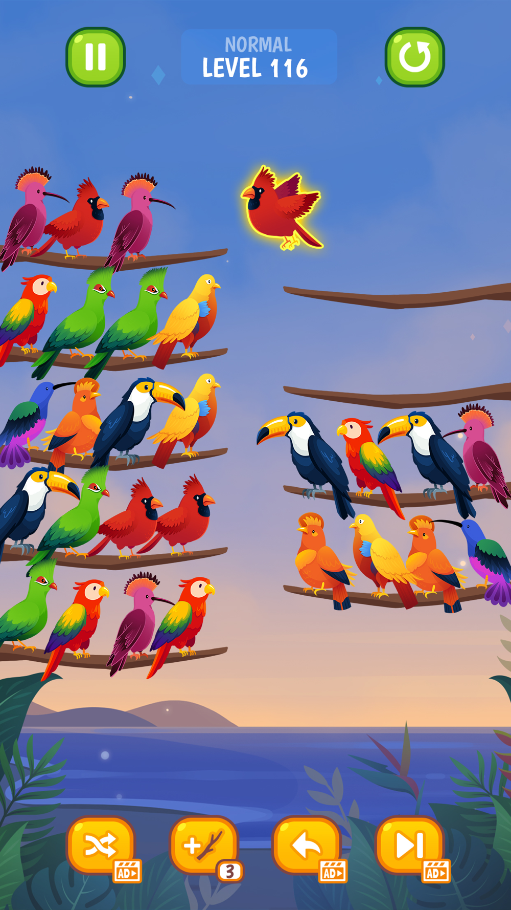 Bird Sort Puzzle - Latest free sorting puzzle game with new art style, collection of colorful birds. Bird Sort will definitely make you enjoy while training your brain. This sorting game stimulates your brain in a very fun and challenging way. It's easy to play with one finger control and suitable for all ages. Test your IQ by passing unique levels and unlocking new challenges. Play Bird Sort now for free and enjoy super fun challenges and awesome brain teasers!